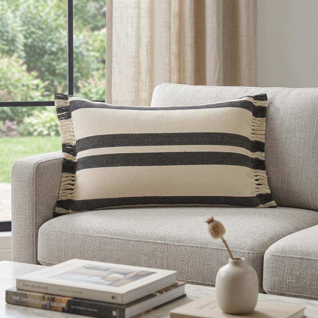 striped cotton throw pillow cover, cotton throw pillow cover, cotton throw pillow cover fringe, lumbar striped cotton throw pillow, striped cotton throw pillow |