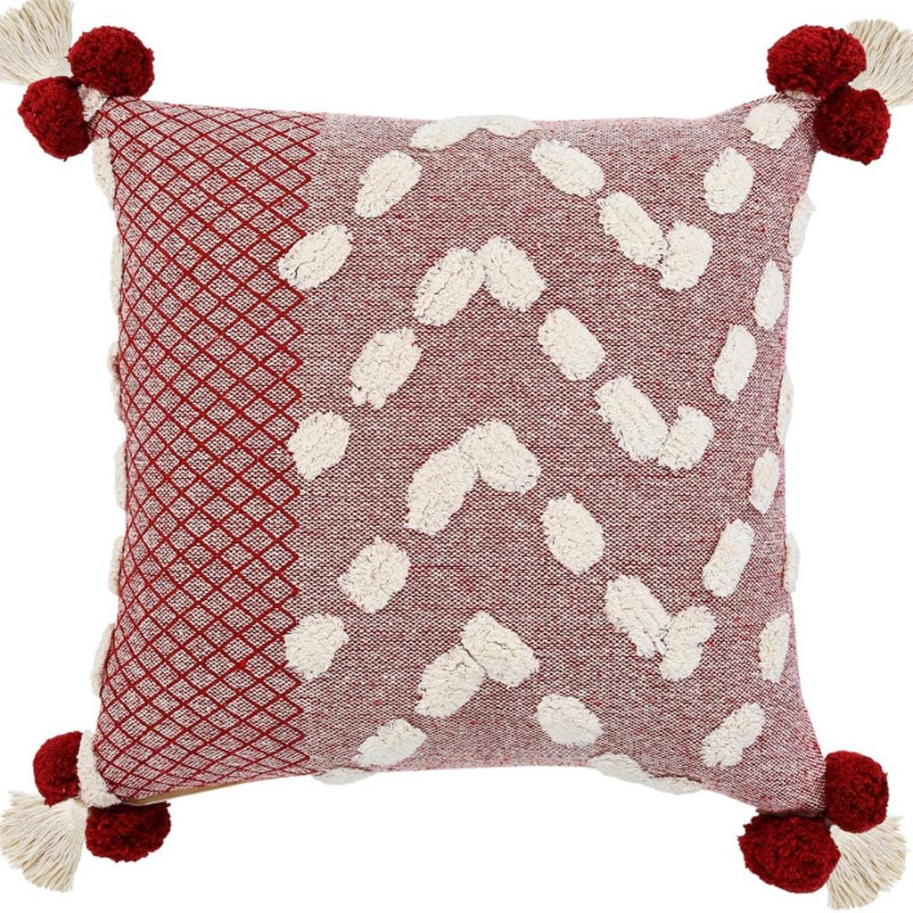 Bring a bit of fashion and zip to your space with this eye-catching and comfy 20-inch red and white geometric cotton throw pillow cover. This red and white hued, accent pillow cover, represents quality construction, expertly made from durable cotton that is not only long lasting but soft to the touch as well. Decorative pillow covers are a great way to change up the look and feel of your space easily and quickly. Combine with your own fill or insert to add decoration and dimension to your favorite chair, accent your sofa, or to use as part of your bed ensemble. 20.00-inch h x 20.00-inch w x 0.50-inch d.
