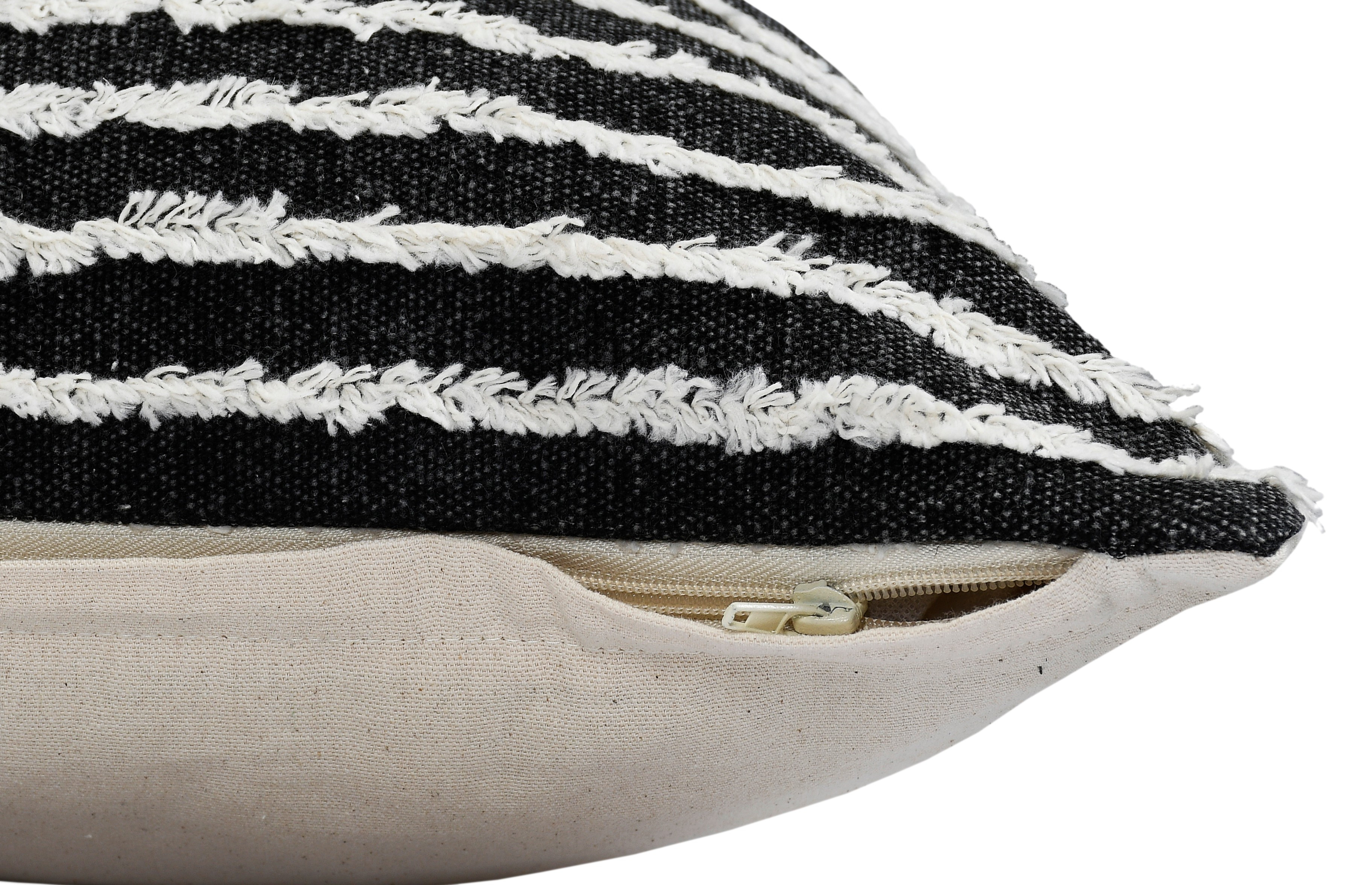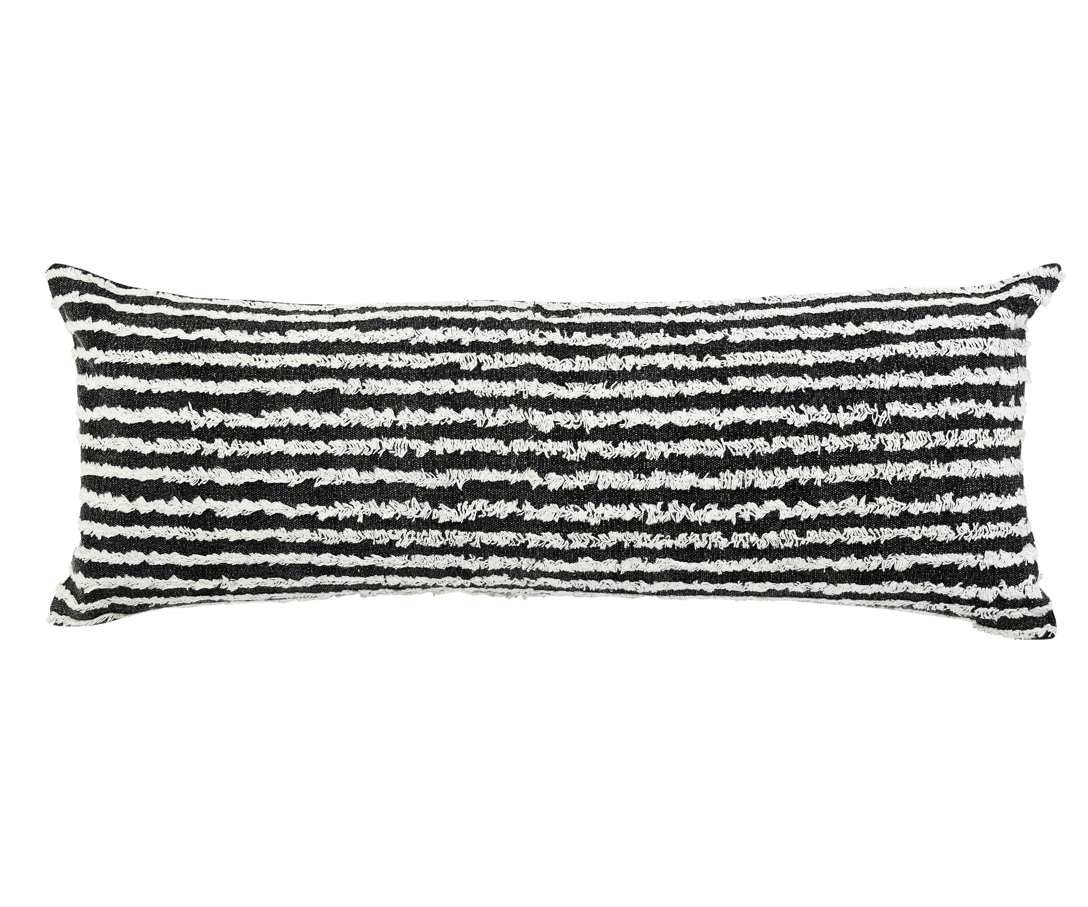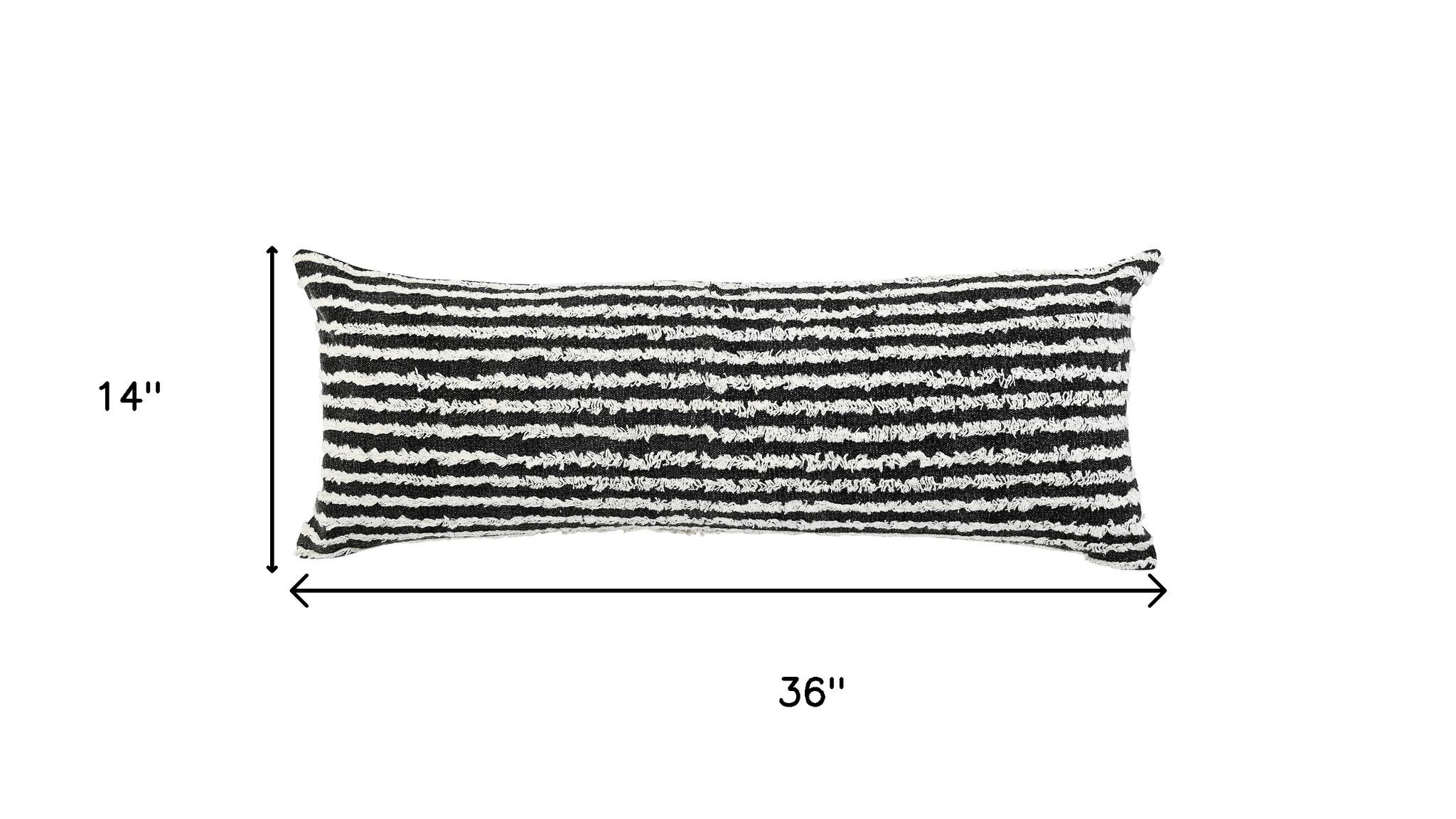 Add an air of fashion to your room and rejuvenate the space with this cute and fashionable 14-inch x 36-inch black and white lumbar striped cotton throw pillow cover. Durable black and white cotton has been used to give this pillow cover a beautiful look that will stand the test of time. Pillow covers are a good idea for anyone that loves to decorate or accent their space with color and texture. Combine with your own fill or insert to add decoration and dimension to your favorite chair, accent your sofa, or to use as part of your bed ensemble. 14.00-inch h x 36.00-inch w x 0.50-inch d.