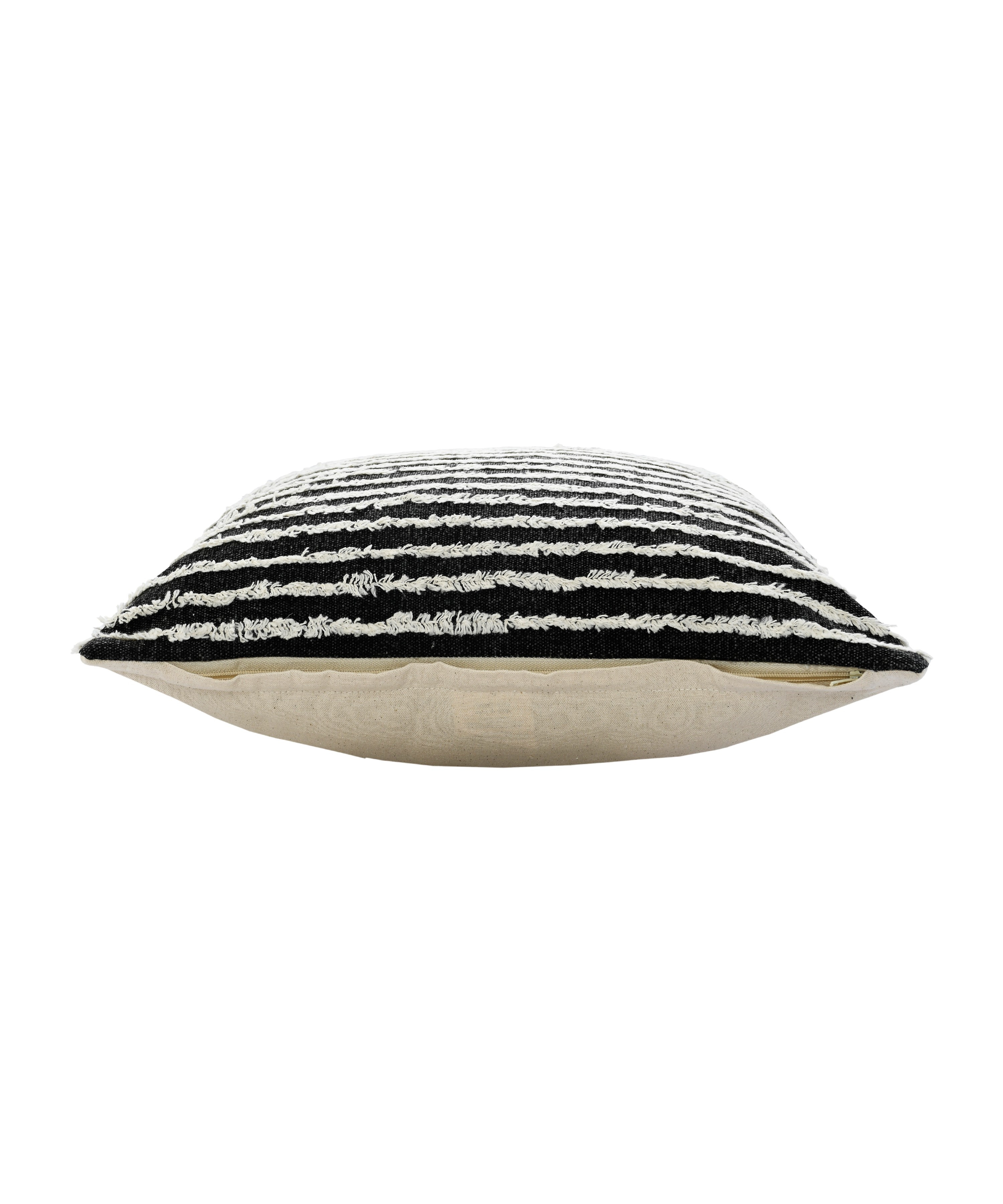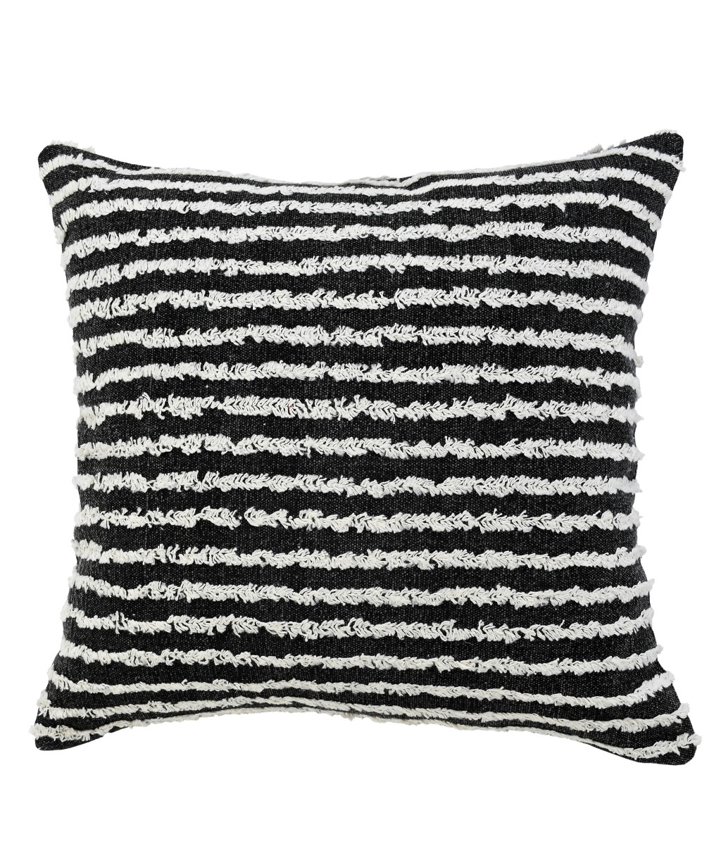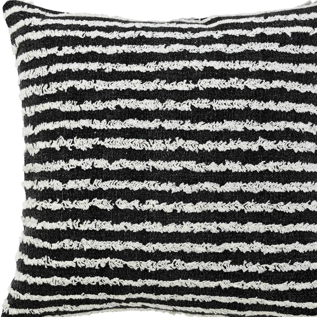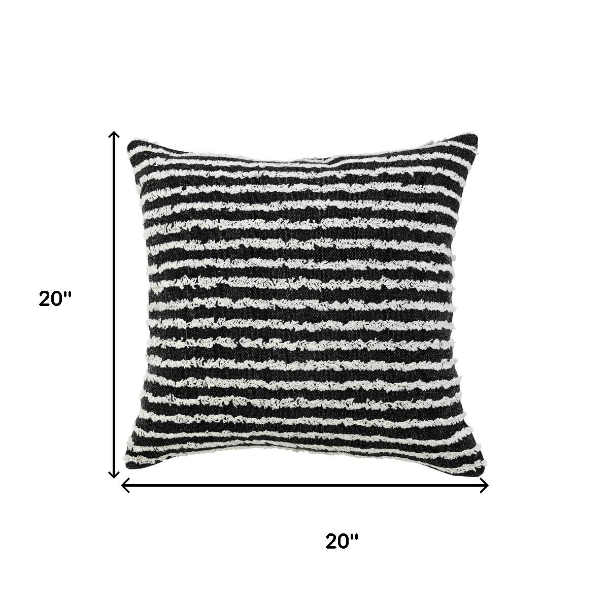 The perfect complement to your sofa, favorite chair, or bed, this 20-inch black and white striped cotton throw pillow cover is a great decorative accent. This soft and durable decorative pillow cover is expertly made of high grade, long lasting cotton in a black and white coloration. Pillow covers are a good idea for anyone that loves to decorate or accent their space with color and texture. Combine with your own fill or insert to add decoration and dimension to your favorite chair, accent your sofa, or to use as part of your bed ensemble. 20.00-inch h x 20.00-inch w x 0.50-inch d.