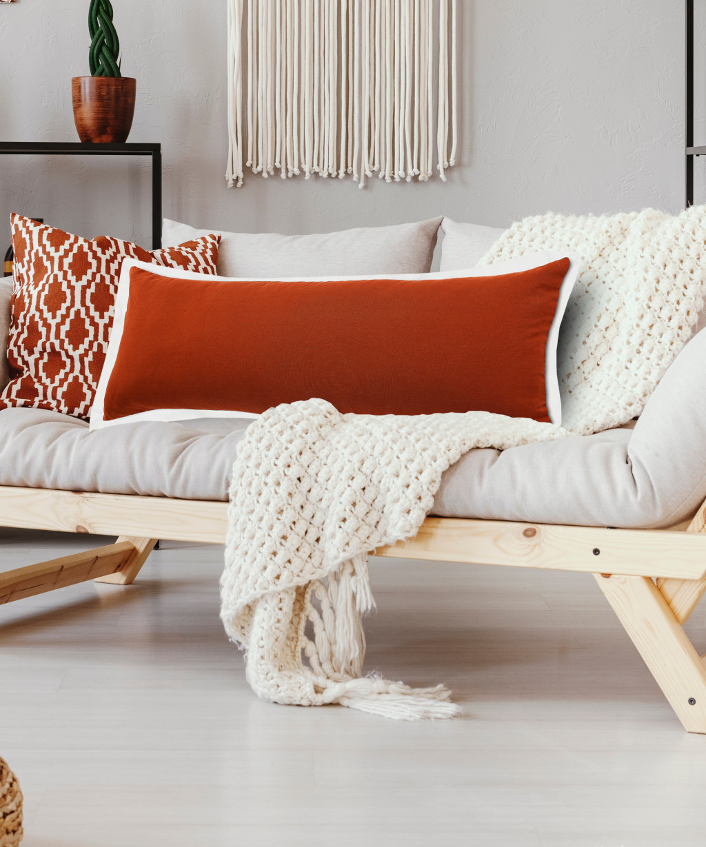 cotton throw pillow cover, block cotton throw pillow cover, color block cotton throw pillow, white lumbar color block cotton, 14" X 36" brown white lumbar |