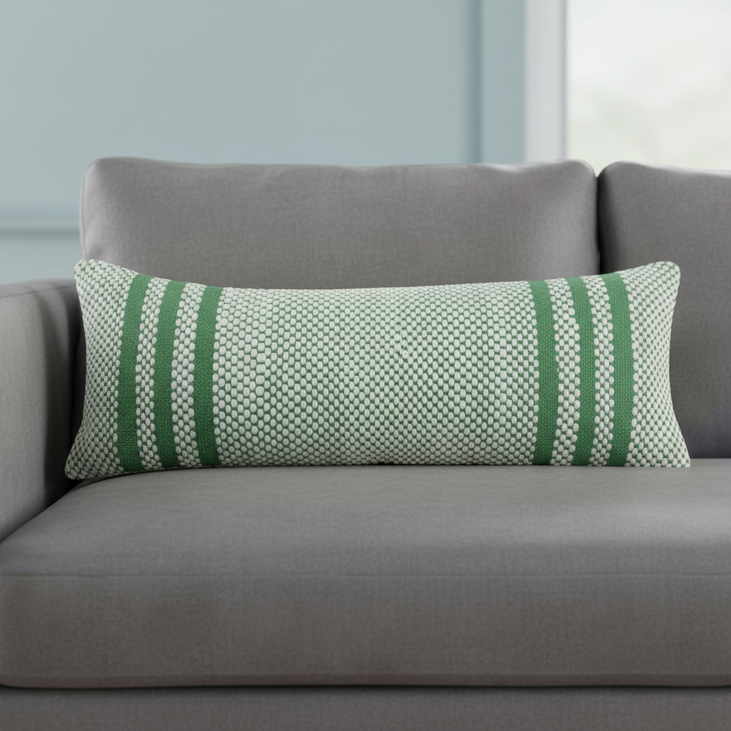 cotton blend throw pillow cover, blend throw pillow cover, striped cotton blend throw pillow, throw pillow cover, 14" X 36" green white lumbar |