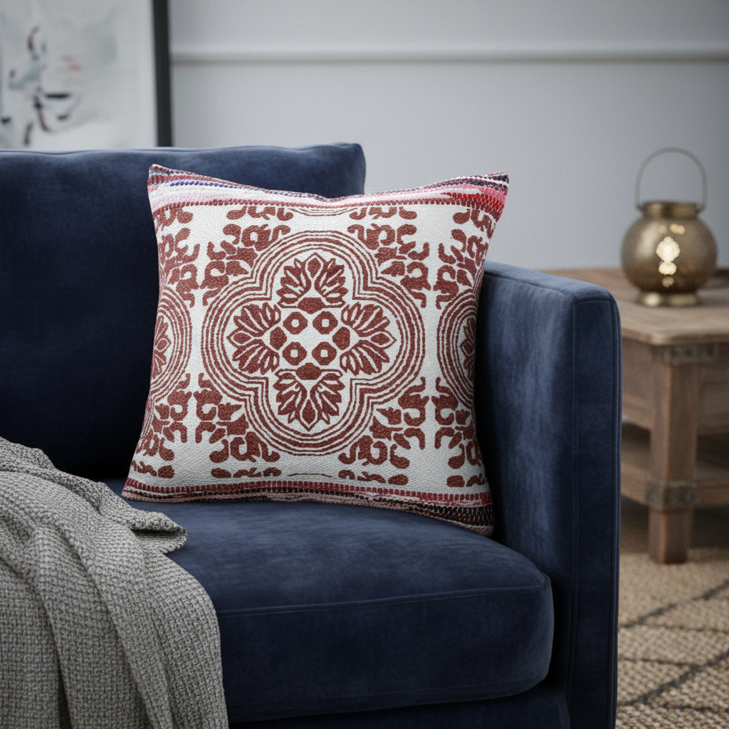 cotton blend throw pillow cover, medallion cotton blend throw pillow, blend throw pillow cover, cotton blend throw pillow, 20" red white medallion cotton |
