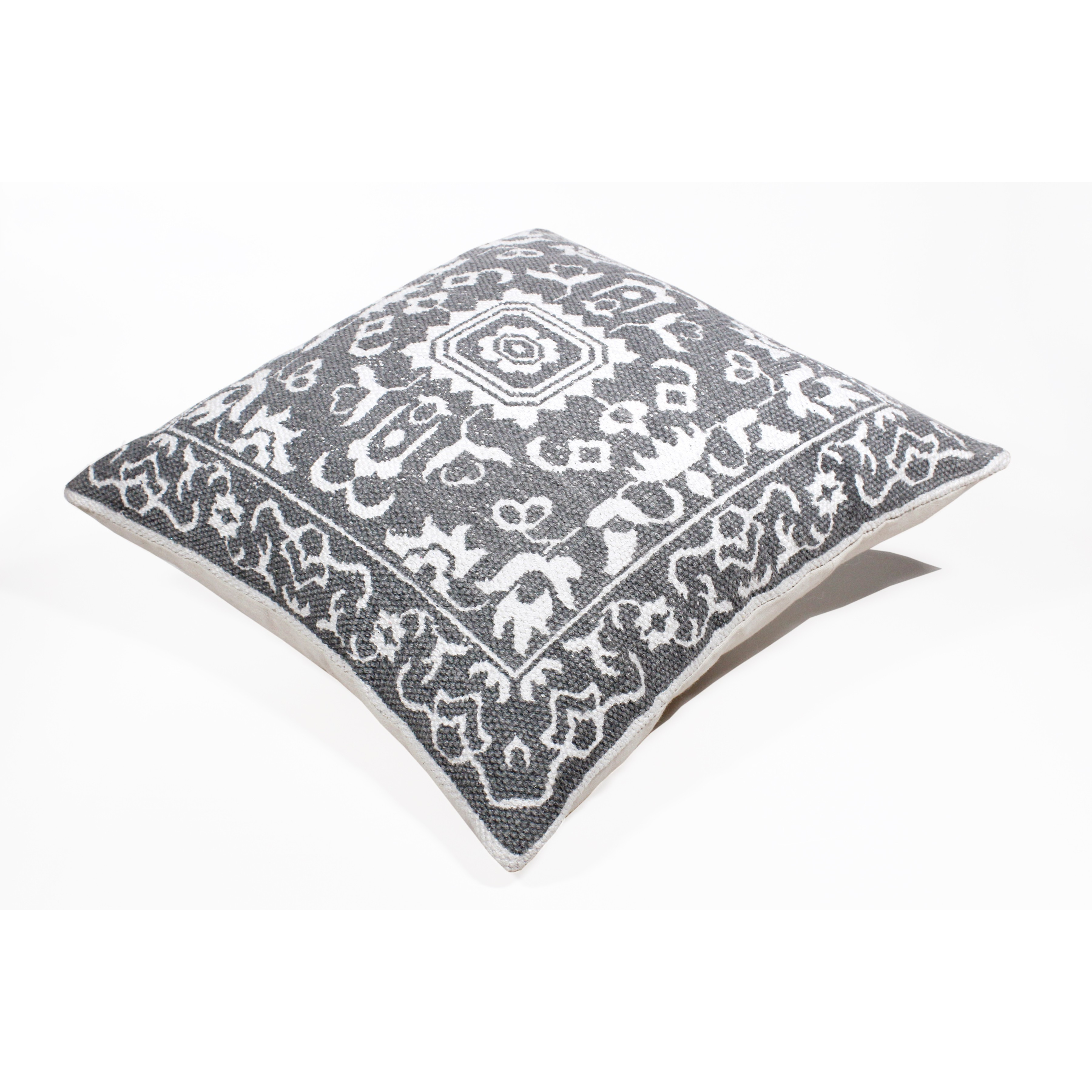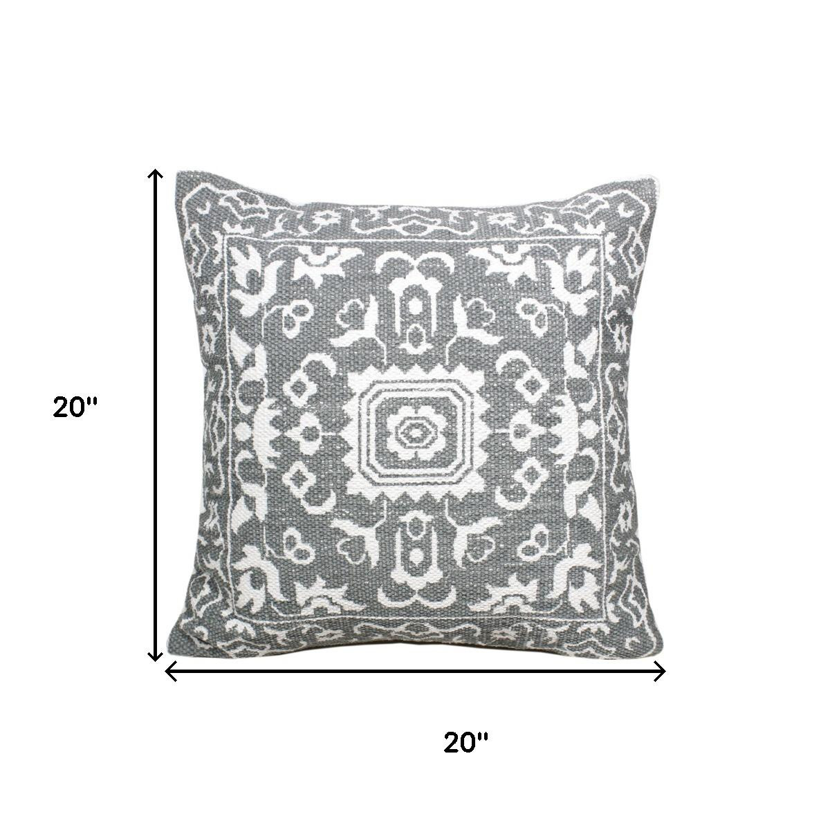 This 20-inch gray and white medallion cotton blend throw pillow cover will add a beautiful decorative accent to your decor. This gray and white colored decorative pillow cover is made from high grade cotton blend that is durable and long lasting. Pillow covers are a good idea for anyone that loves to decorate or accent their space with color and texture. Combine with your own fill or insert to add decoration and dimension to your favorite chair, accent your sofa, or to use as part of your bed ensemble. 20.00-inch h x 20.00-inch w x 0.50-inch d.