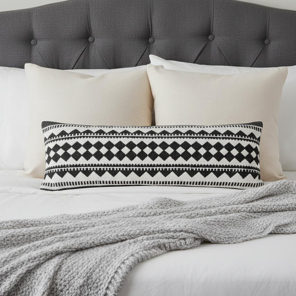 cotton blend throw pillow cover, blend throw pillow cover, geometric cotton blend throw pillow, black ivory lumbar geometric cotton, 14" X 36" black ivory lumbar geometric |