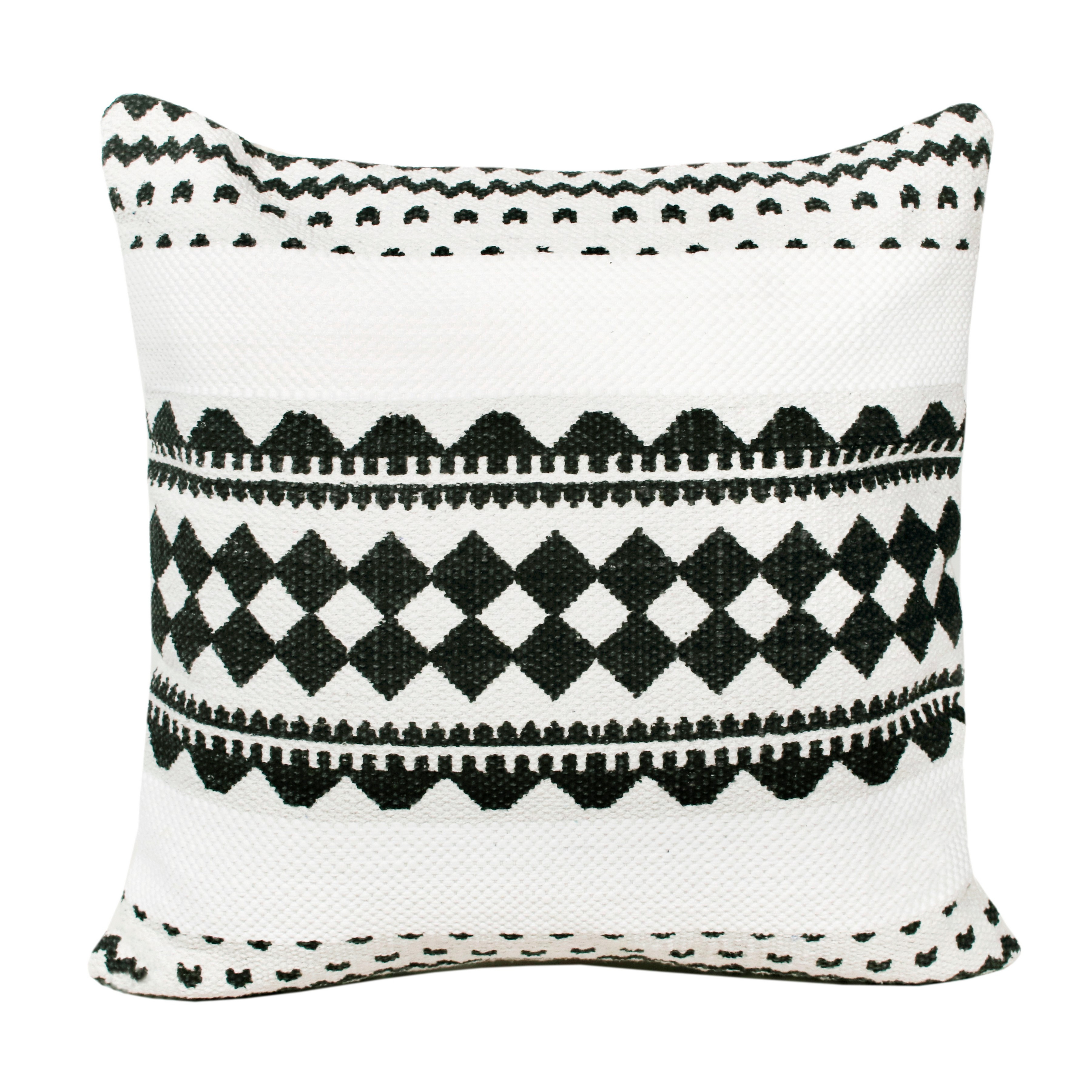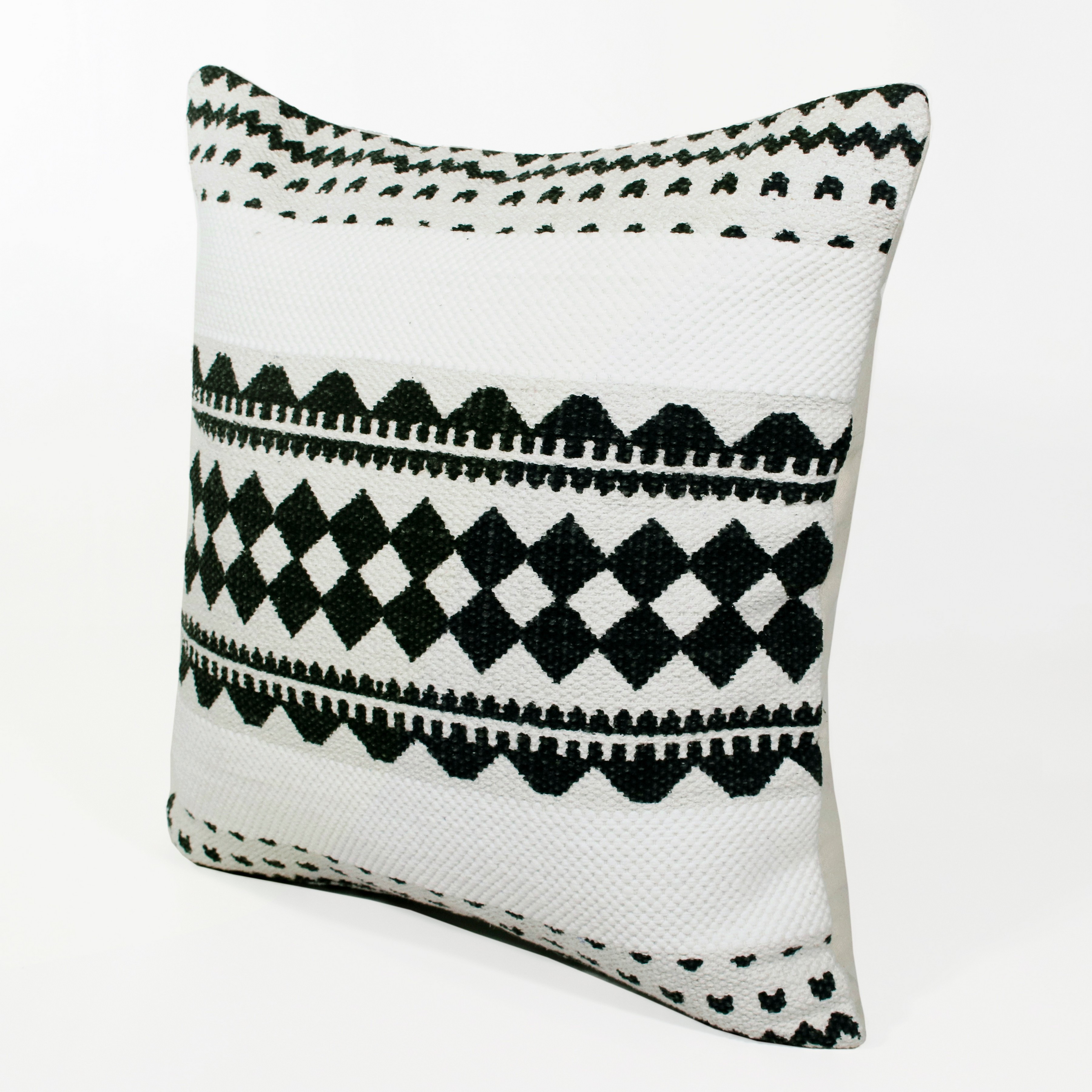Bring a bit of fashion and zip to your space with this eye-catching and comfy 20-inch black and white geometric cotton blend throw pillow cover. This black and white colored decorative pillow cover is made from high grade cotton blend that is durable and long lasting. Decorative pillow covers are a great way to change up the look and feel of your space easily and quickly. Combine with your own fill or insert to add decoration and dimension to your favorite chair, accent your sofa, or to use as part of your bed ensemble. 20.00-inch h x 20.00-inch w x 0.50-inch d.