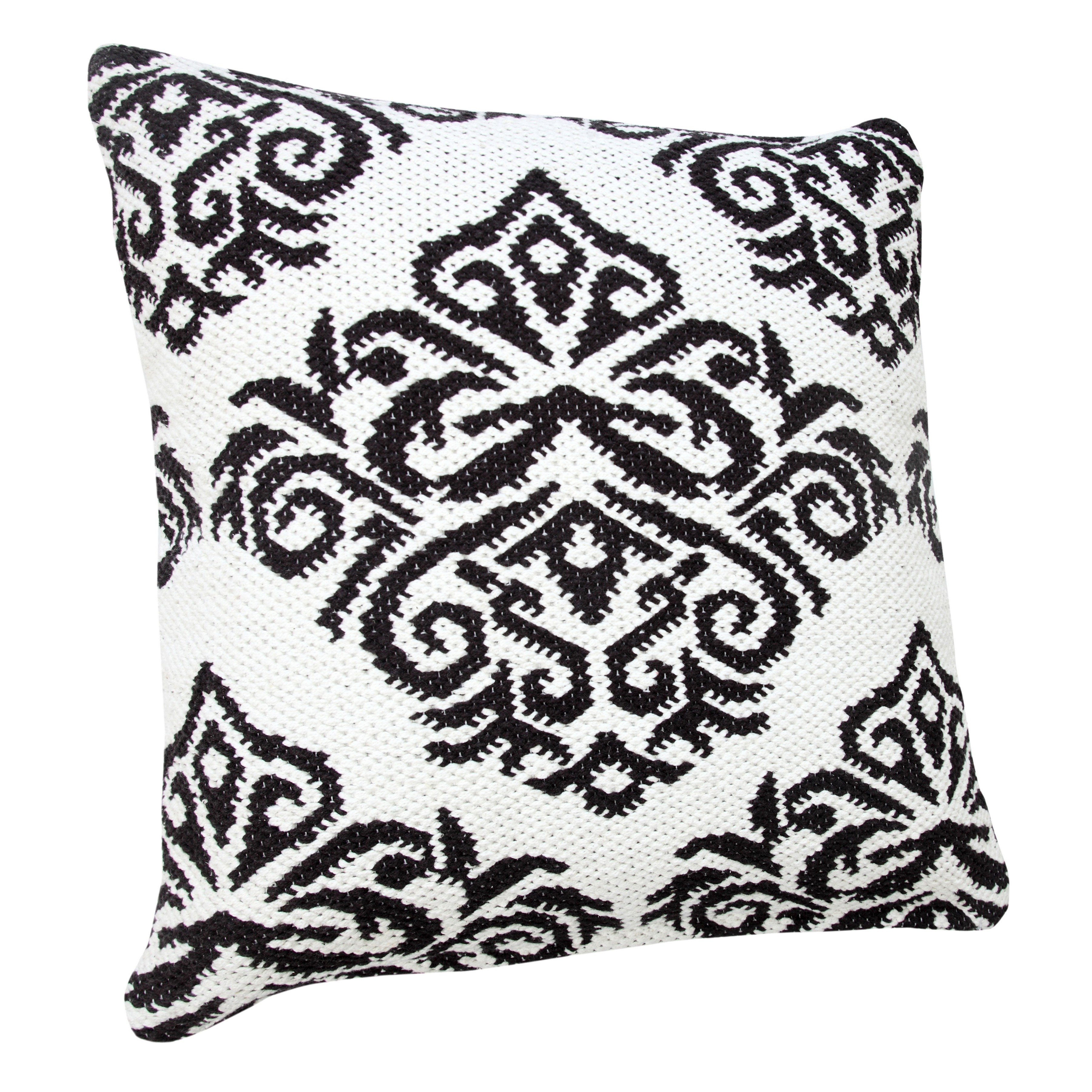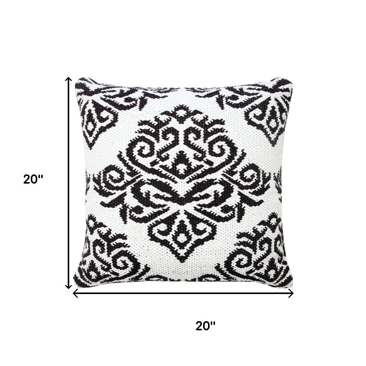 Bring a bit of fashion and zip to your space with this eye-catching and comfy 20-inch white and black medallion cotton blend throw pillow cover. Durable white and black cotton blend has been used to give this pillow cover a beautiful look that will stand the test of time. Pillow covers are a good idea for anyone that loves to decorate or accent their space with color and texture. Combine with your own fill or insert to add decoration and dimension to your favorite chair, accent your sofa, or to use as part of your bed ensemble. 20.00-inch h x 20.00-inch w x 0.50-inch d.