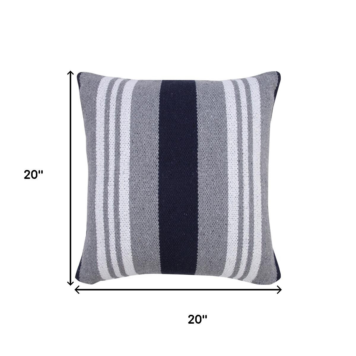 Add an air of fashion to your room and rejuvenate the space with this cute and fashionable 20-inch gray and blue striped cotton throw pillow cover. Durable gray and blue cotton has been used to give this pillow cover a beautiful look that will stand the test of time. Decorative pillow covers are a great way to change up the look and feel of your space easily and quickly. Combine with your own fill or insert to add decoration and dimension to your favorite chair, accent your sofa, or to use as part of your bed ensemble. 20.00-inch h x 20.00-inch w x 0.25-inch d.