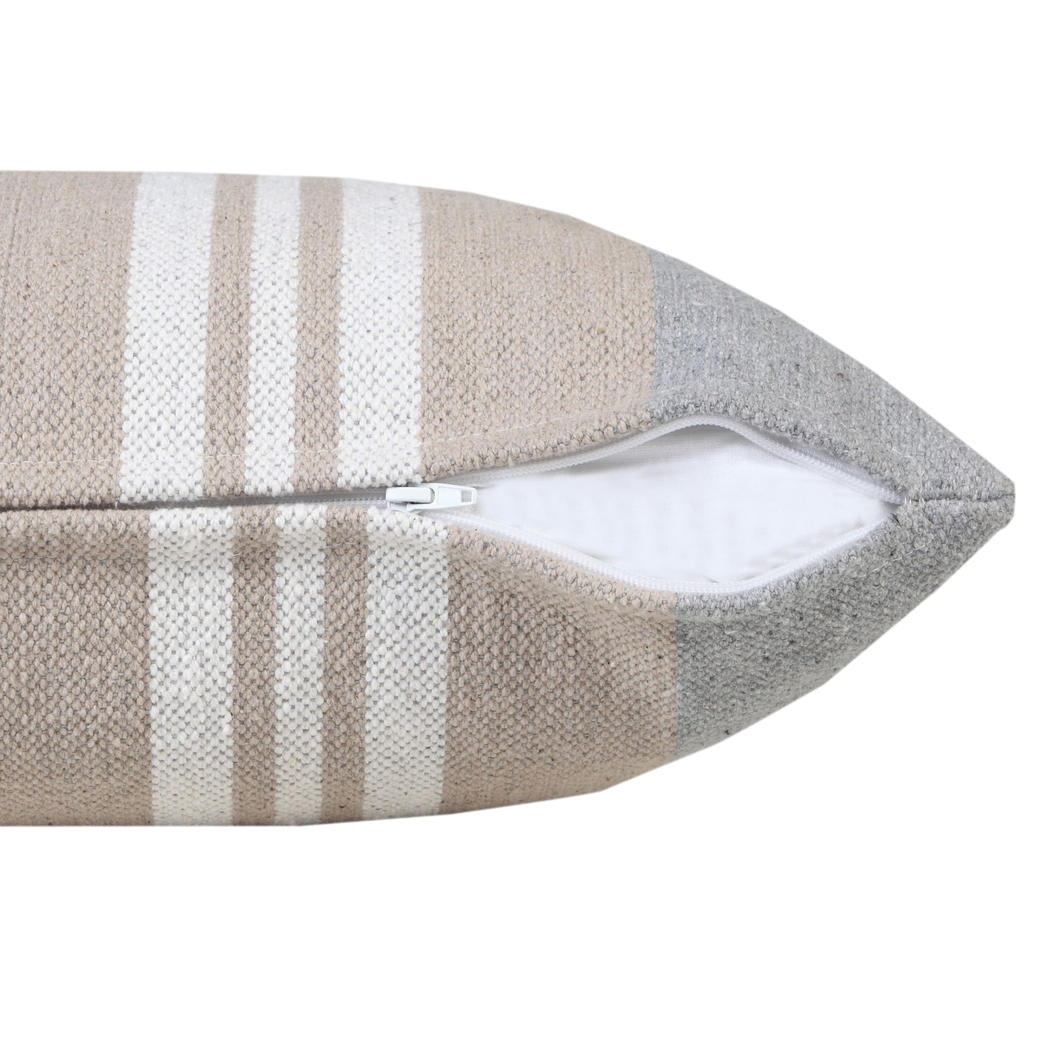 striped cotton throw pillow cover, cotton throw pillow cover, lumbar striped cotton throw pillow, throw pillow cover, 14" X 36" gray beige lumbar |