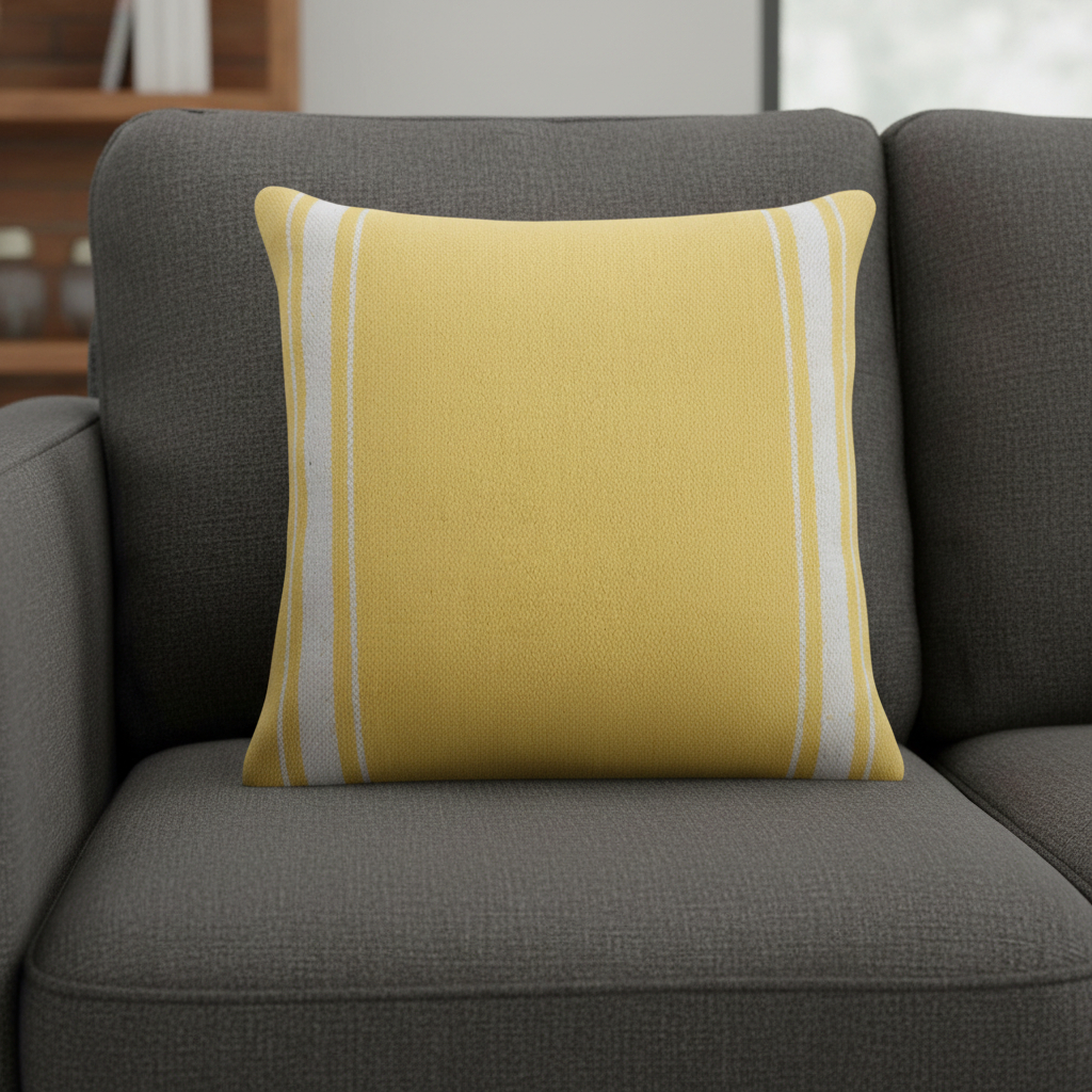 The 20-inch yellow and white striped cotton throw pillow cover is the perfect decorative accessory for your home. This soft and durable decorative pillow cover is expertly made of high grade, long lasting cotton in a yellow and white coloration. Pillow covers are a good idea for anyone that loves to decorate or accent their space with color and texture. Combine with your own fill or insert to add decoration and dimension to your favorite chair, accent your sofa, or to use as part of your bed ensemble. 20.00-inch h x 20.00-inch w x 0.50-inch d.