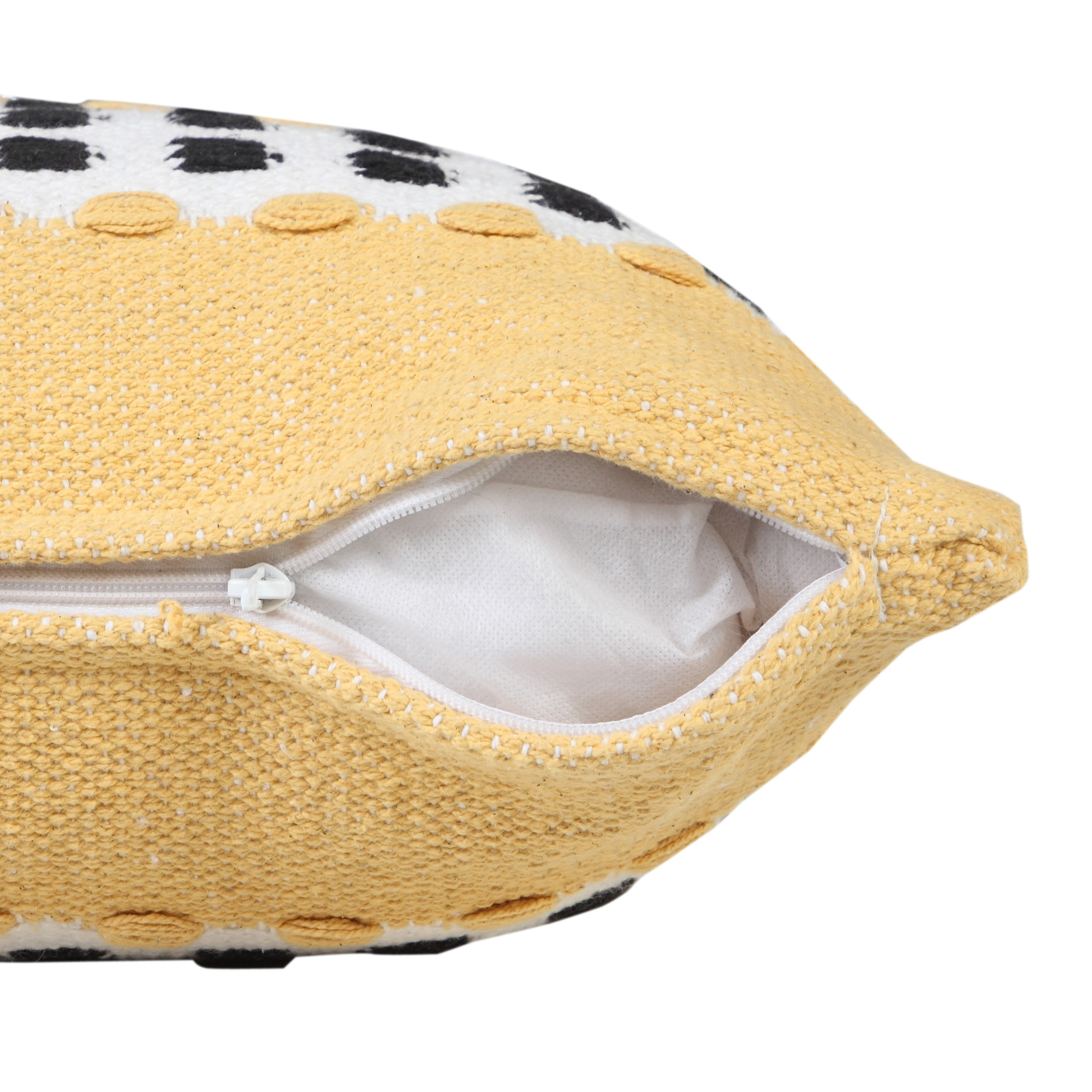Add an air of fashion to your room and rejuvenate the space with this cute and fashionable 20-inch yellow and black striped cotton throw pillow cover. Durable yellow and black cotton has been used to give this pillow cover a beautiful look that will stand the test of time. Pillow covers are a good idea for anyone that loves to decorate or accent their space with color and texture. Combine with your own fill or insert to add decoration and dimension to your favorite chair, accent your sofa, or to use as part of your bed ensemble. 20.00-inch h x 20.00-inch w x 0.50-inch d.