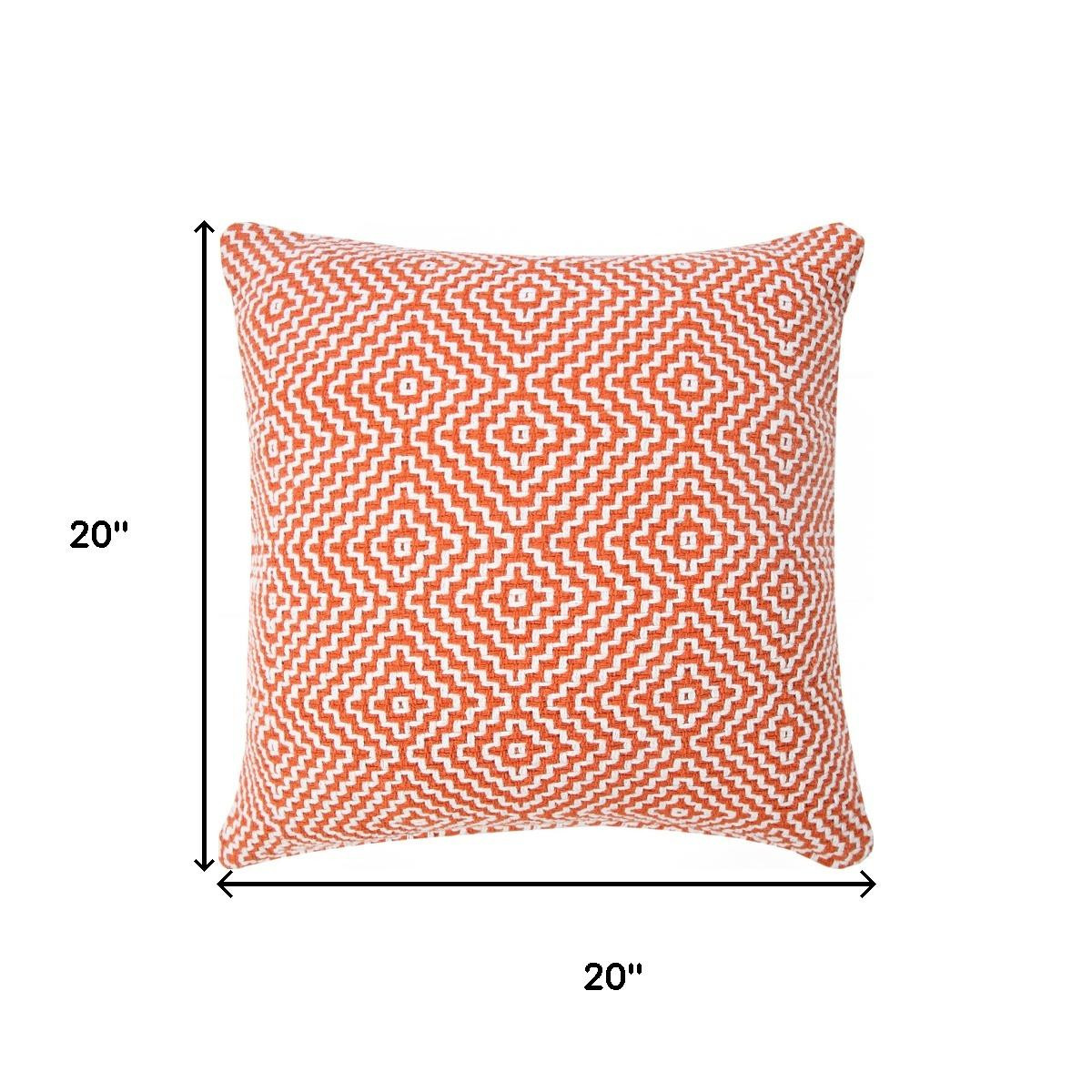 The perfect complement to your sofa, favorite chair, or bed, this 20-inch orange and white diamond cotton throw pillow cover is a great decorative accent. This orange and white hued, accent pillow cover, represents quality construction, expertly made from durable cotton that is not only long lasting but soft to the touch as well. Decorative pillow covers are a great way to change up the look and feel of your space easily and quickly. Combine with your own fill or insert to add decoration and dimension to your favorite chair, accent your sofa, or to use as part of your bed ensemble. 20.00-inch h x 20.00-inch w x 0.25-inch d.