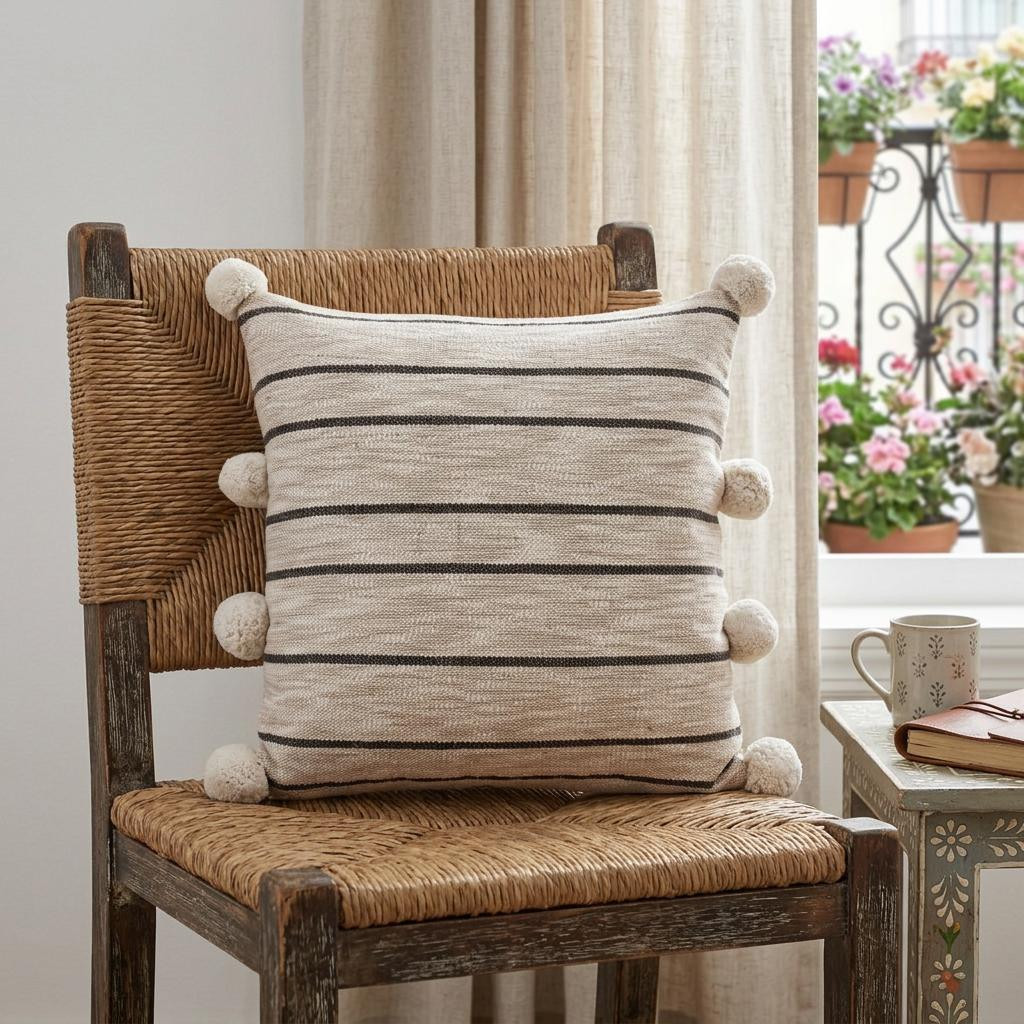 blend throw pillow cover pompoms, cotton blend throw pillow cover, blend throw pillow cover, pillow cover pompoms, throw pillow cover pompoms |