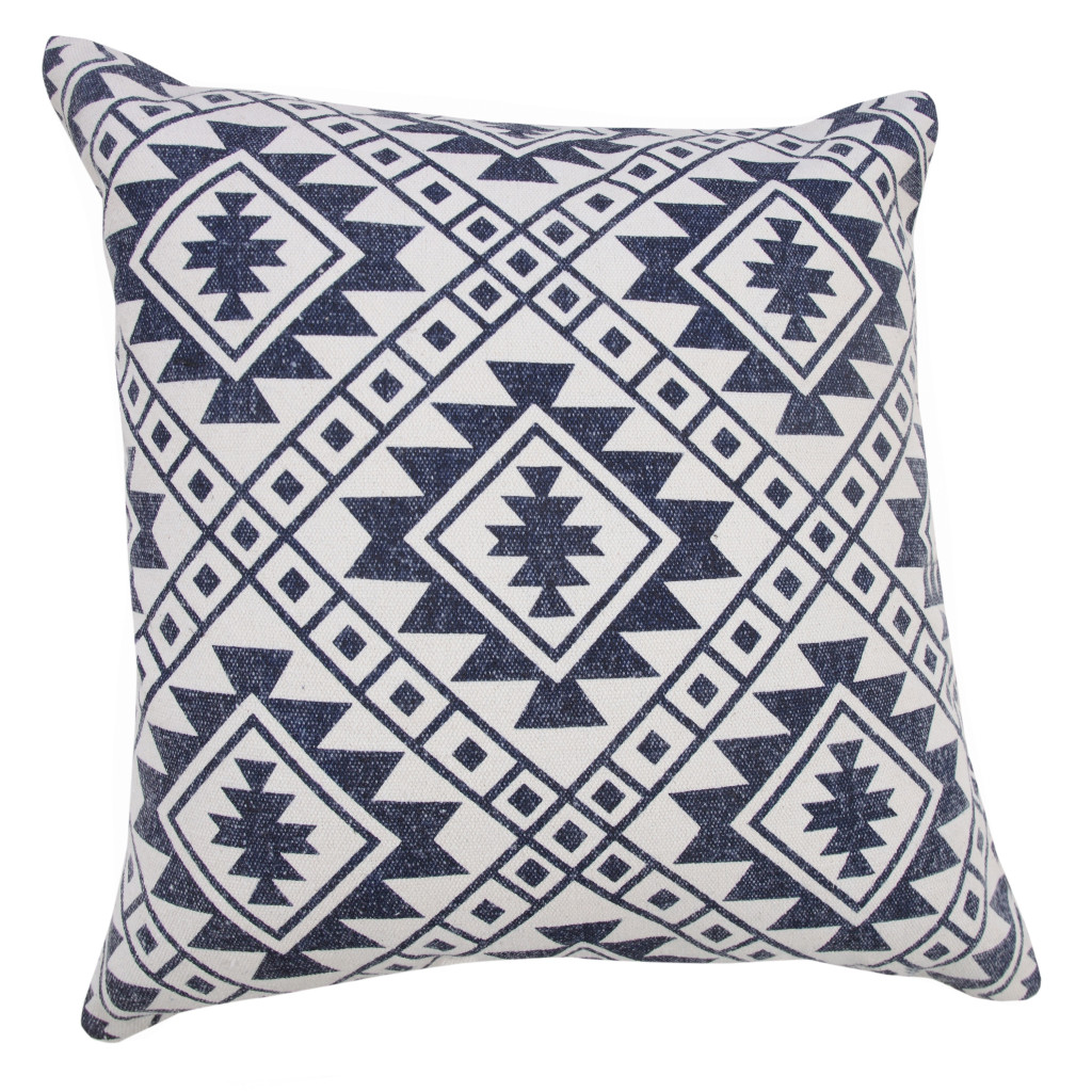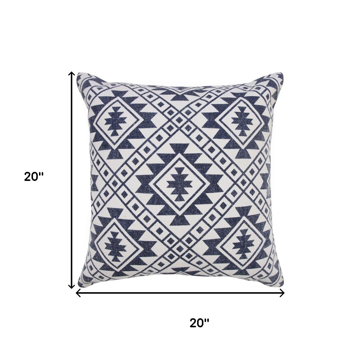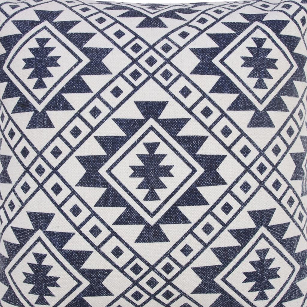 Unique and decorative, this comfortable 20-inch blue and white geometric cotton throw pillow cover will leave a lasting impression. Durable blue and white cotton has been used to give this pillow cover a beautiful look that will stand the test of time. Pillow covers are a good idea for anyone that loves to decorate or accent their space with color and texture. Combine with your own fill or insert to add decoration and dimension to your favorite chair, accent your sofa, or to use as part of your bed ensemble. 20.00-inch h x 20.00-inch w x 0.50-inch d.