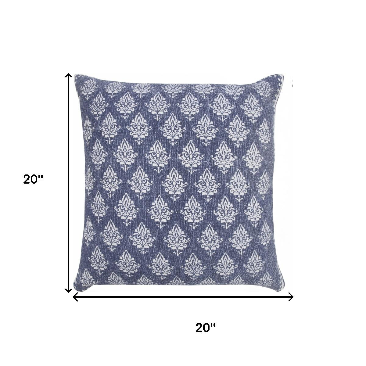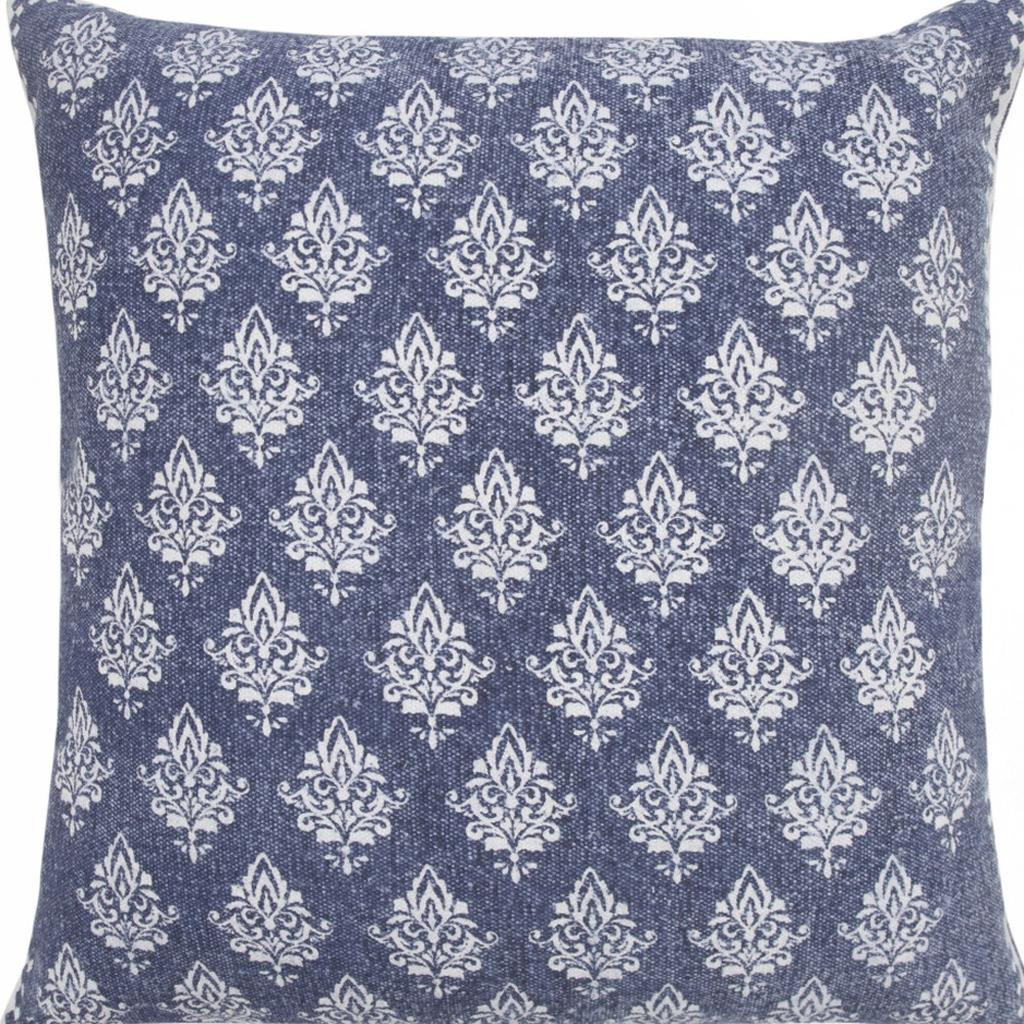 Add an air of fashion to your room and rejuvenate the space with this cute and fashionable 20-inch blue and white damask cotton throw pillow cover. Durable blue and white cotton has been used to give this pillow cover a beautiful look that will stand the test of time. Pillow covers are a good idea for anyone that loves to decorate or accent their space with color and texture. Combine with your own fill or insert to add decoration and dimension to your favorite chair, accent your sofa, or to use as part of your bed ensemble. 20.00-inch h x 20.00-inch w x 0.25-inch d.