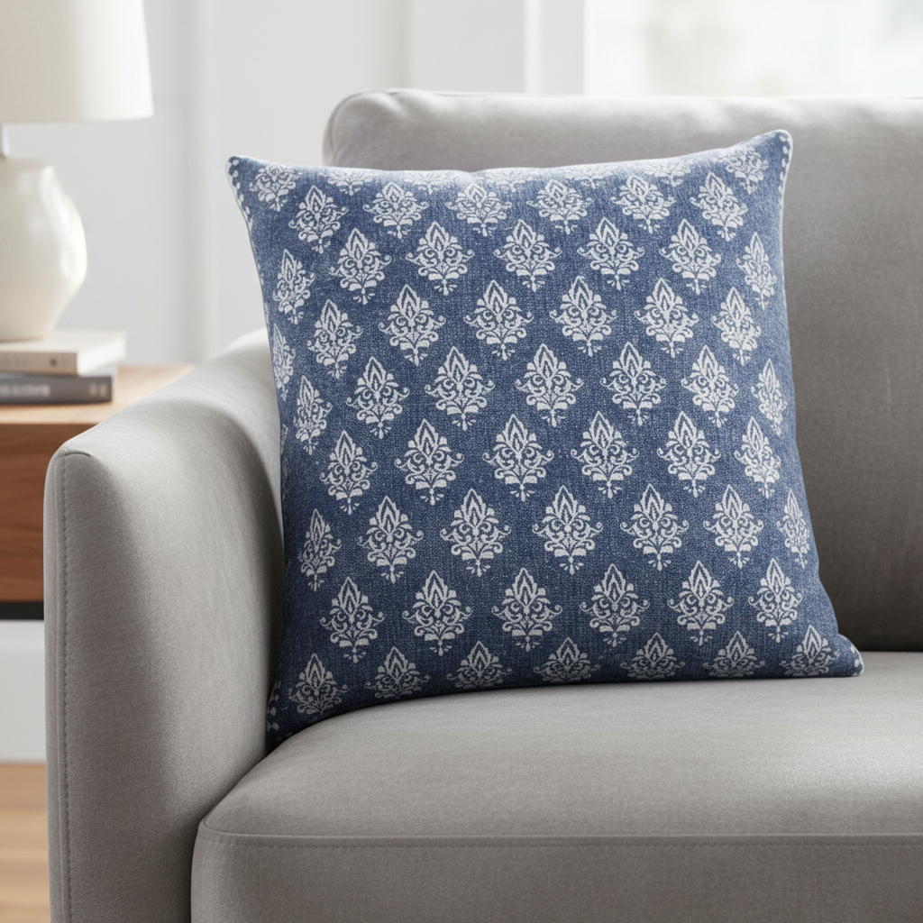 Unique and decorative, this comfortable 20-inch blue and white damask cotton throw pillow cover will leave a lasting impression. This blue and white colored decorative pillow cover is made from high grade cotton that is durable and long lasting. Pillow covers are a good idea for anyone that loves to decorate or accent their space with color and texture. Combine with your own fill or insert to add decoration and dimension to your favorite chair, accent your sofa, or to use as part of your bed ensemble. 20.00-inch h x 20.00-inch w x 0.25-inch d.