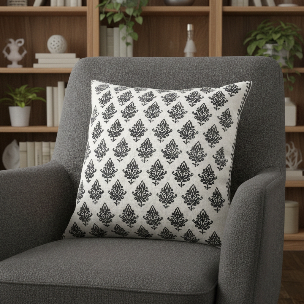 This 20-inch white and black floral cotton throw pillow cover will add a beautiful decorative accent to your decor. The white and black coloring of the extremely durable and long lasting cotton pillow cover will add dimension and texture to your space. Decorative pillow covers are a great way to change up the look and feel of your space easily and quickly. Combine with your own fill or insert to add decoration and dimension to your favorite chair, accent your sofa, or to use as part of your bed ensemble. 20.00-inch h x 20.00-inch w x 0.50-inch d.