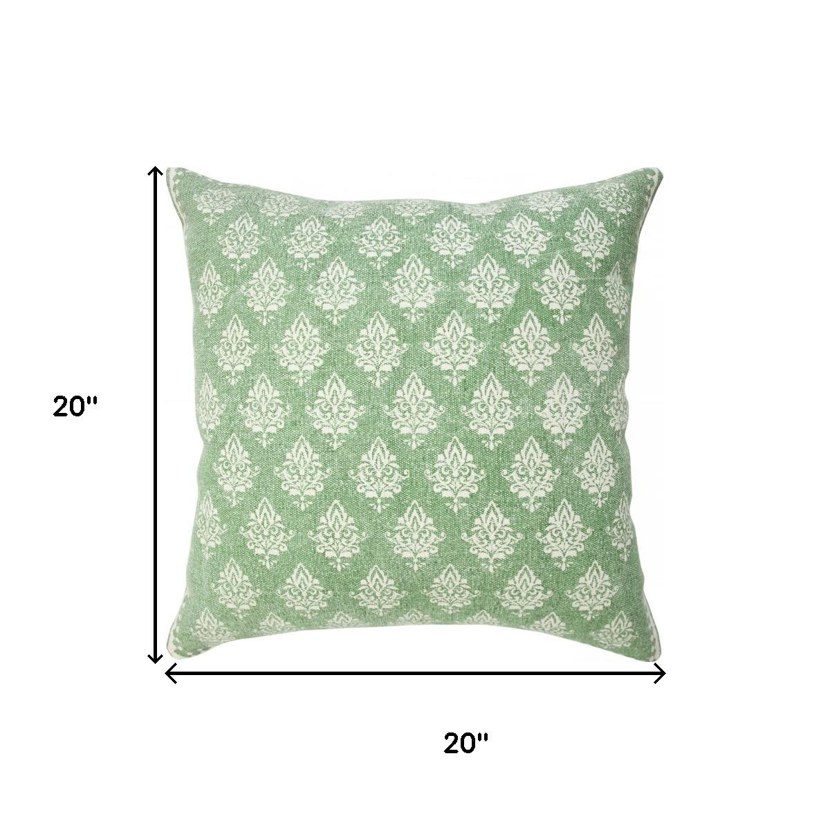 Add an air of fashion to your room and rejuvenate the space with this cute and fashionable 20-inch green and white damask cotton throw pillow cover. This green and white colored decorative pillow cover is made from high grade cotton that is durable and long lasting. Pillow covers are a good idea for anyone that loves to decorate or accent their space with color and texture. Combine with your own fill or insert to add decoration and dimension to your favorite chair, accent your sofa, or to use as part of your bed ensemble. 20.00-inch h x 20.00-inch w x 0.25-inch d.