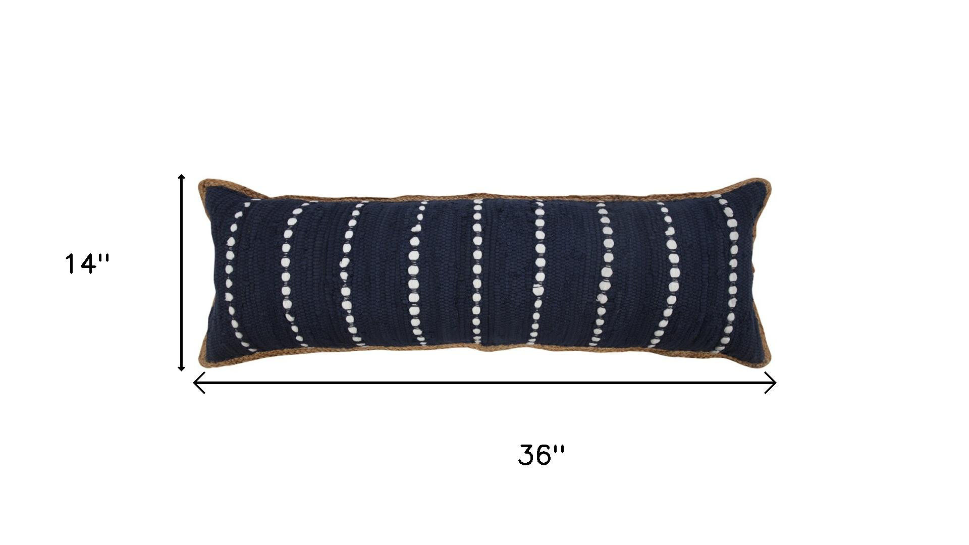 The perfect complement to your sofa, favorite chair, or bed, this 14-inch x 36-inch blue and white lumbar beach striped cotton blend throw pillow cover is a great decorative accent. Durable blue and white cotton blend has been used to give this pillow cover a beautiful look that will stand the test of time. Pillow covers are a good idea for anyone that loves to decorate or accent their space with color and texture. Combine with your own fill or insert to add decoration and dimension to your favorite chair, accent your sofa, or to use as part of your bed ensemble. 14.00-inch h x 36.00-inch w x 0.50-inch d.