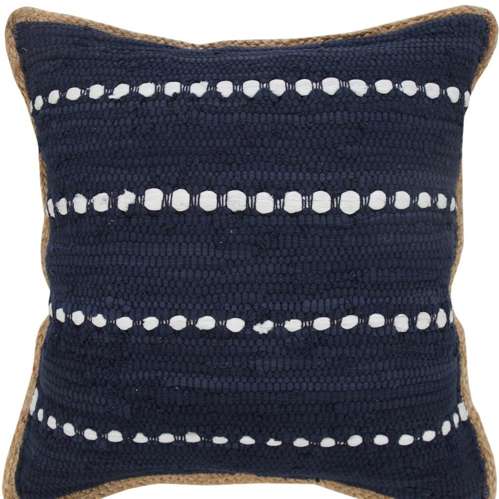 Add an air of fashion to your room and rejuvenate the space with this cute and fashionable 20-inch blue and white beach striped cotton blend throw pillow cover. Durable blue and white cotton blend has been used to give this pillow cover a beautiful look that will stand the test of time. Pillow covers are a good idea for anyone that loves to decorate or accent their space with color and texture. Combine with your own fill or insert to add decoration and dimension to your favorite chair, accent your sofa, or to use as part of your bed ensemble. 20.00-inch h x 20.00-inch w x 0.50-inch d.