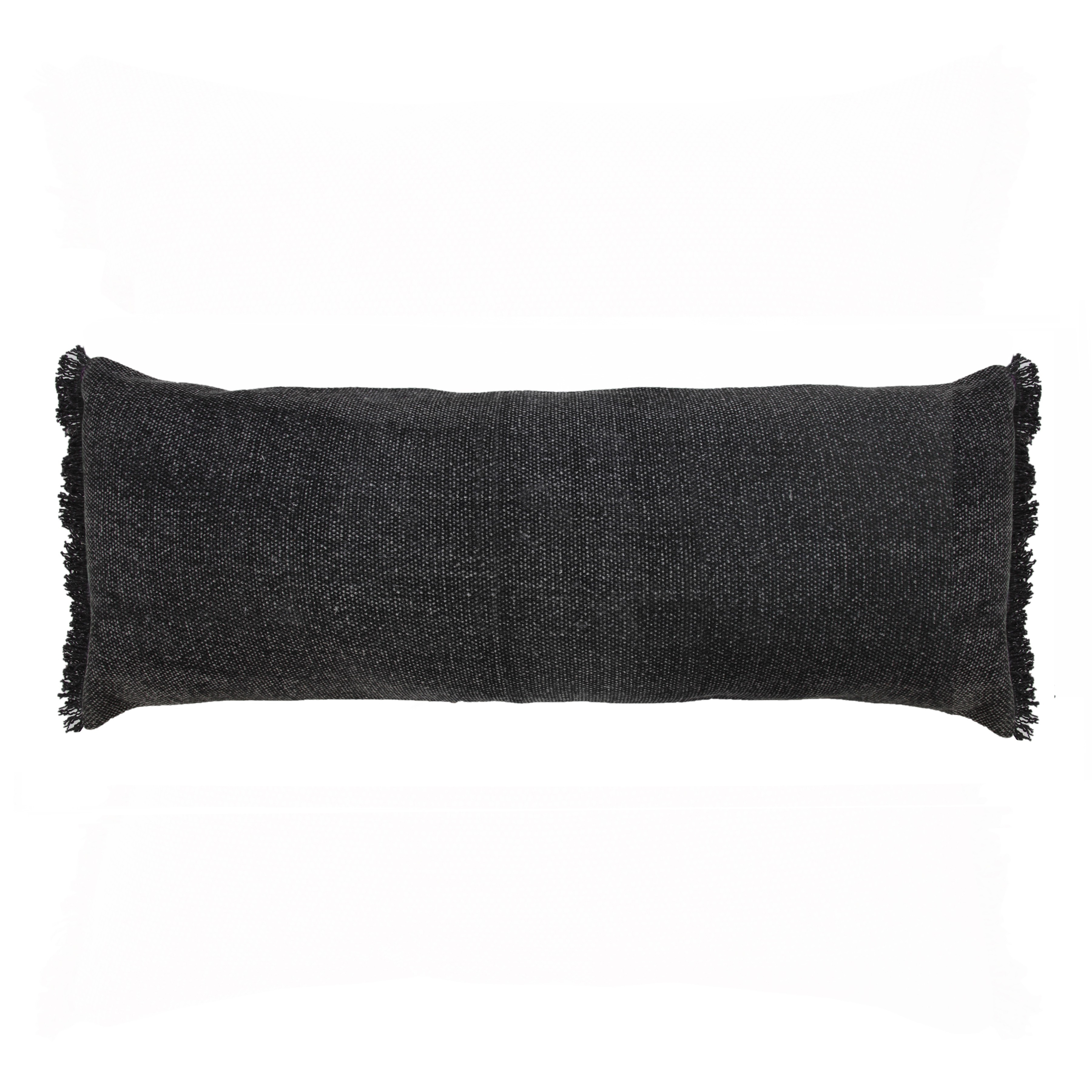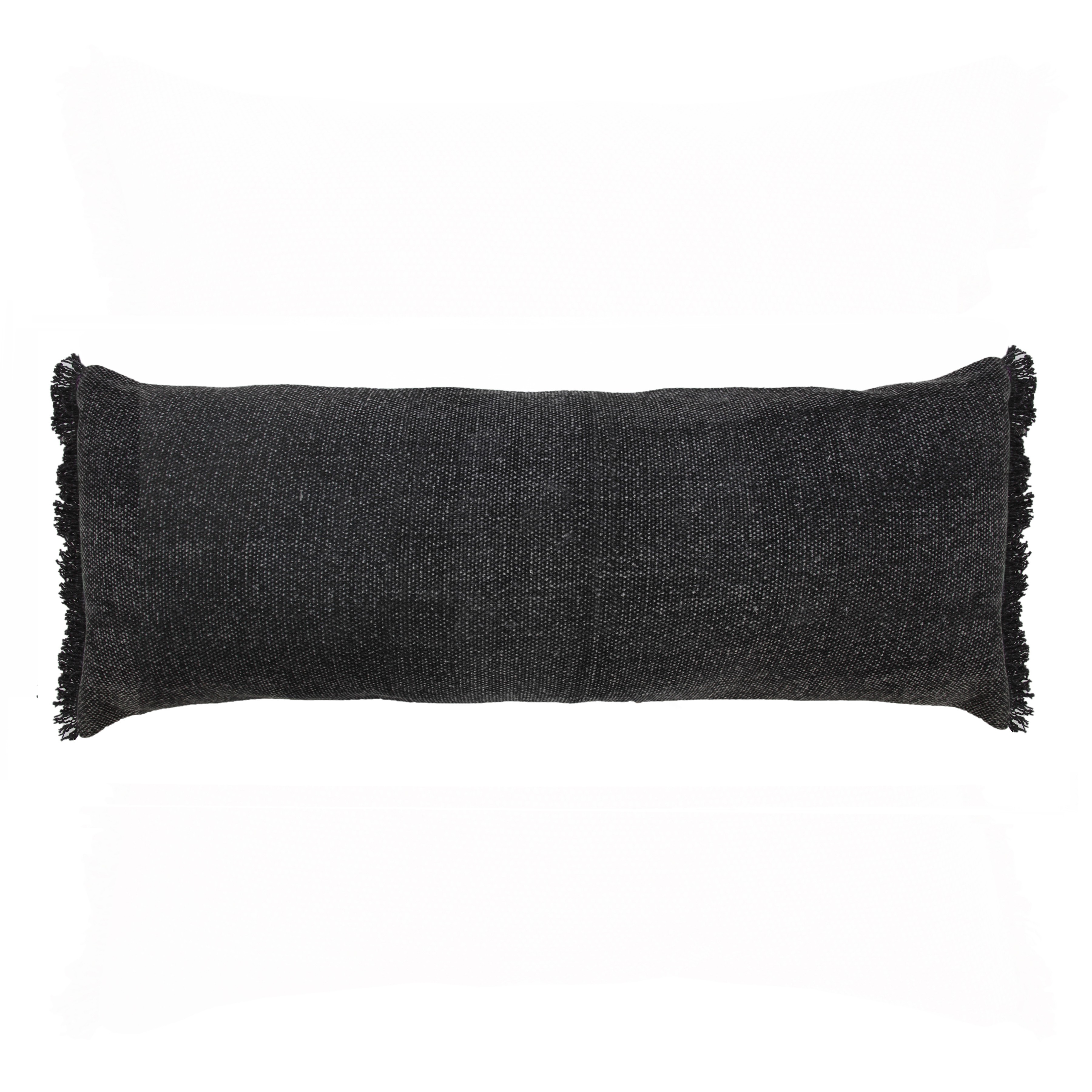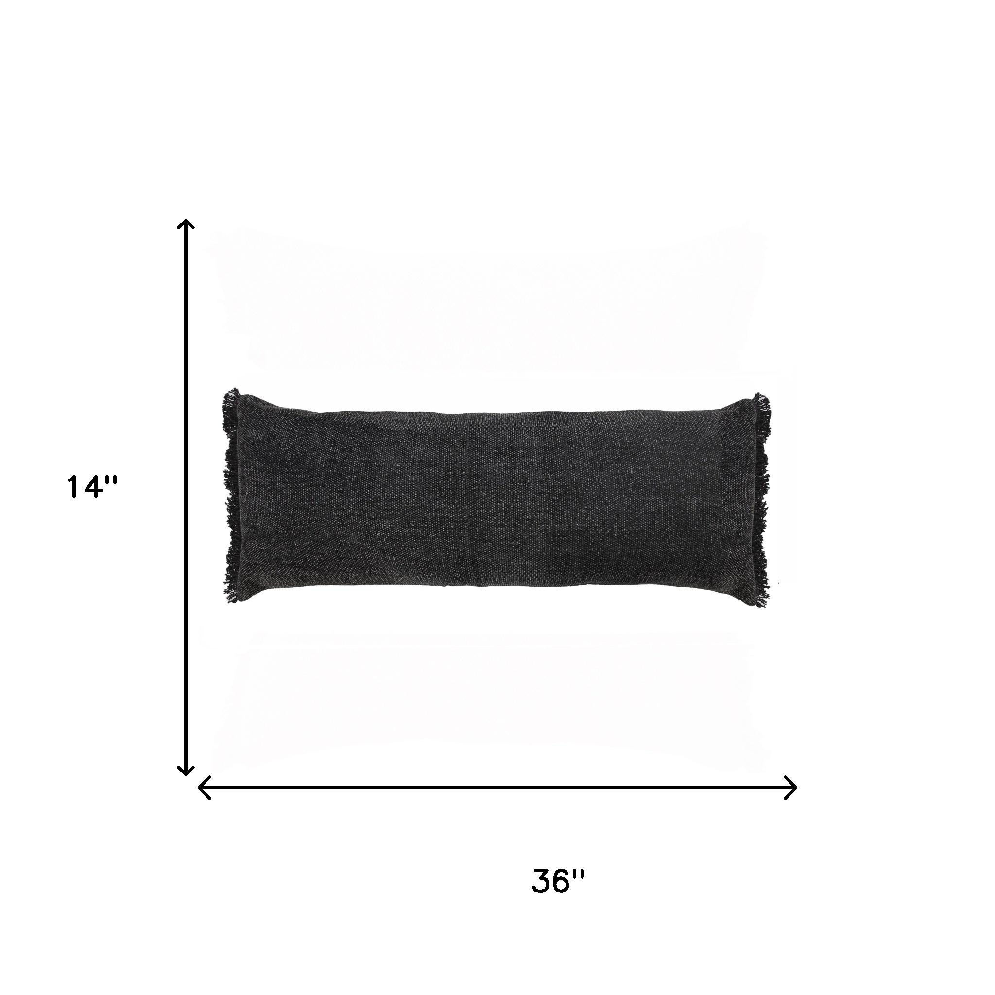 The perfect complement to your sofa, favorite chair, or bed, this 14-inch x 36-inch black lumbar cotton throw pillow cover is a great decorative accent. This black colored decorative pillow cover is made from high grade cotton that is durable and long lasting. Pillow covers are a good idea for anyone that loves to decorate or accent their space with color and texture. Combine with your own fill or insert to add decoration and dimension to your favorite chair, accent your sofa, or to use as part of your bed ensemble. 14.00-inch h x 36.00-inch w x 0.25-inch d.