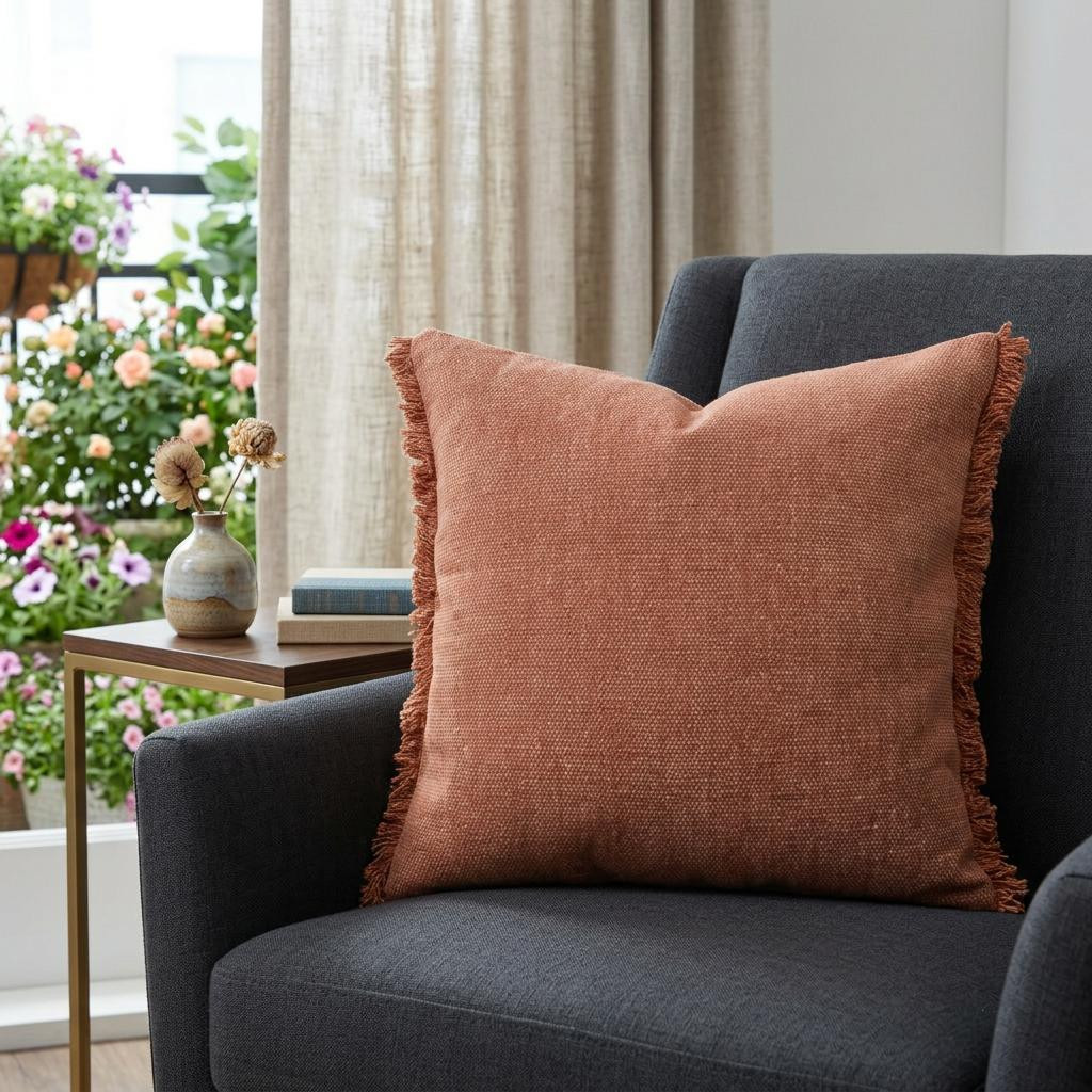 cotton throw pillow cover fringe, throw pillow cover fringe, pillow cover fringe, cotton throw pillow cover, brown cotton throw pillow cover |