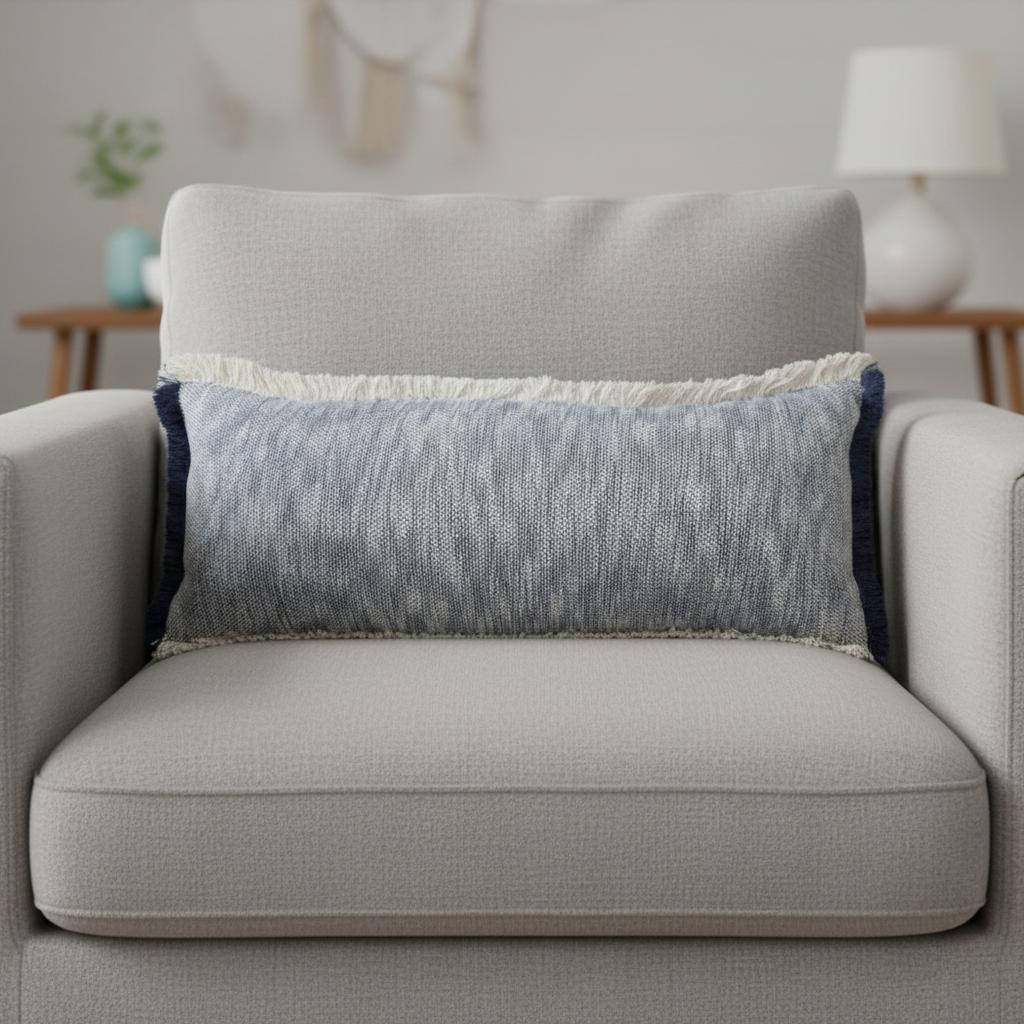 Bring a bit of fashion and zip to your space with this eye-catching and comfy 14-inch x 36-inch blue and beige lumbar cotton throw pillow cover. The blue and beige coloring of the extremely durable and long lasting cotton pillow cover will add dimension and texture to your space. Pillow covers are a good idea for anyone that loves to decorate or accent their space with color and texture. Combine with your own fill or insert to add decoration and dimension to your favorite chair, accent your sofa, or to use as part of your bed ensemble. 14.00-inch h x 36.00-inch w x 0.25-inch d.