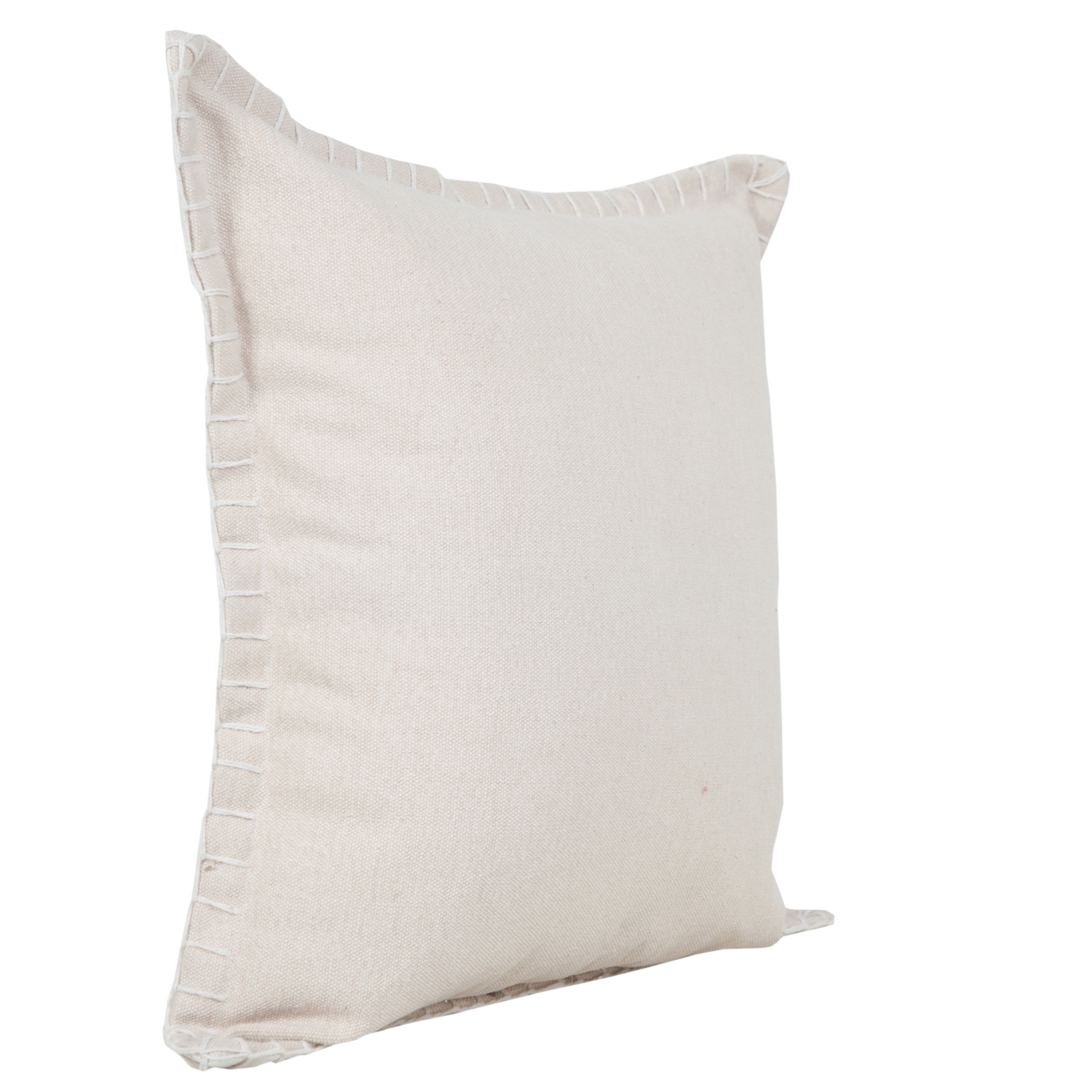 The 20-inch beige cotton throw pillow cover is the perfect decorative accessory for your home. Durable beige cotton has been used to give this pillow cover a beautiful look that will stand the test of time. Pillow covers are a good idea for anyone that loves to decorate or accent their space with color and texture. Combine with your own fill or insert to add decoration and dimension to your favorite chair, accent your sofa, or to use as part of your bed ensemble. 20.00-inch h x 20.00-inch w x 0.50-inch d.
