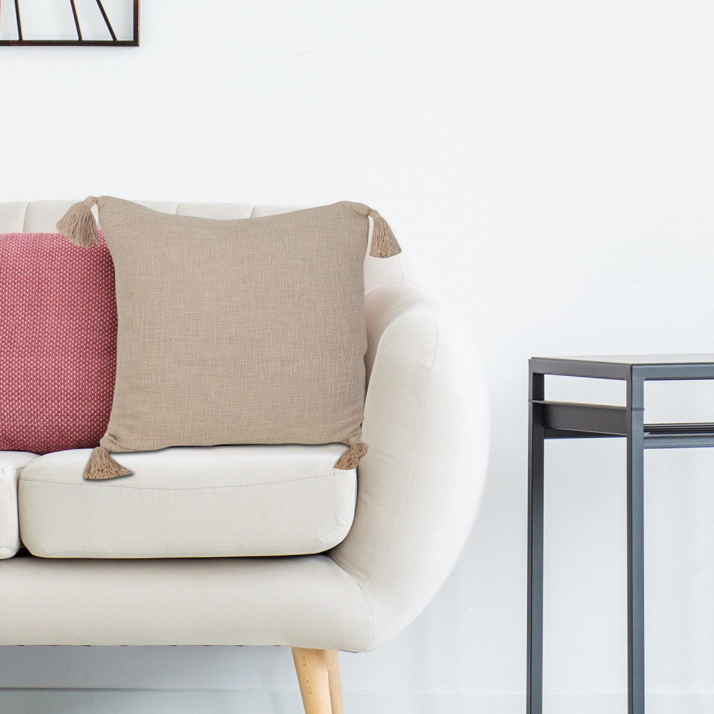 Add an air of fashion to your room and rejuvenate the space with this cute and fashionable 20-inch beige cotton throw pillow cover. This beige hued, accent pillow cover, represents quality construction, expertly made from durable cotton that is not only long lasting but soft to the touch as well. Pillow covers are a good idea for anyone that loves to decorate or accent their space with color and texture. Combine with your own fill or insert to add decoration and dimension to your favorite chair, accent your sofa, or to use as part of your bed ensemble. 20.00-inch h x 20.00-inch w x 0.25-inch d.