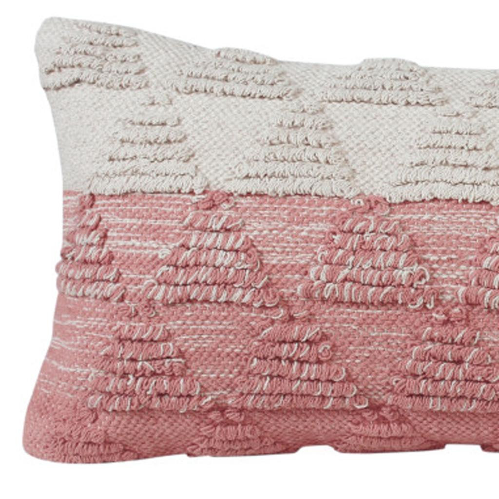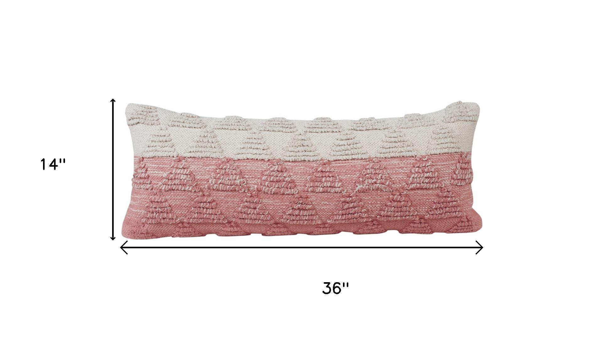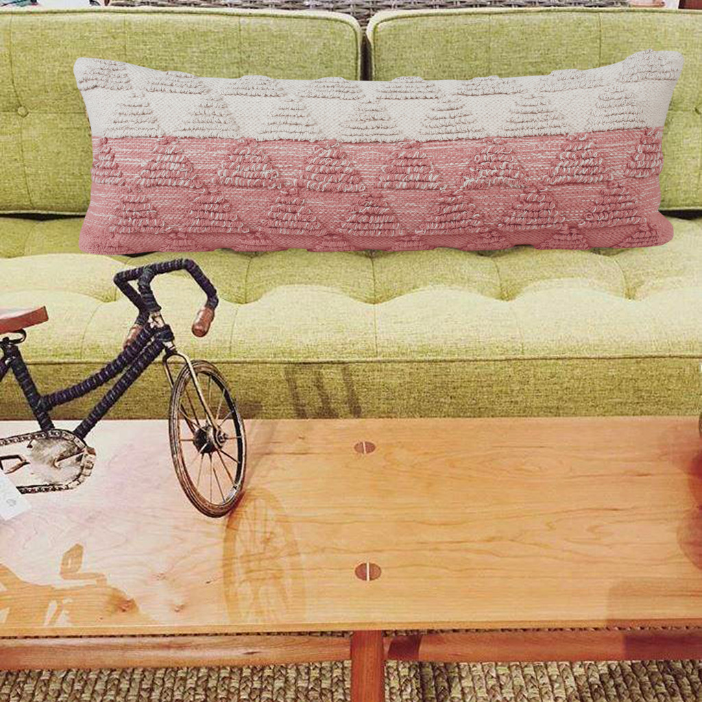 Bring a bit of fashion and zip to your space with this eye-catching and comfy 14-inch x 36-inch pink and white lumbar geometric cotton throw pillow cover. This pink and white hued, accent pillow cover, represents quality construction, expertly made from durable cotton that is not only long lasting but soft to the touch as well. Decorative pillow covers are a great way to change up the look and feel of your space easily and quickly. Combine with your own fill or insert to add decoration and dimension to your favorite chair, accent your sofa, or to use as part of your bed ensemble. 14.00-inch h x 36.00-inch w x 0.50-inch d.