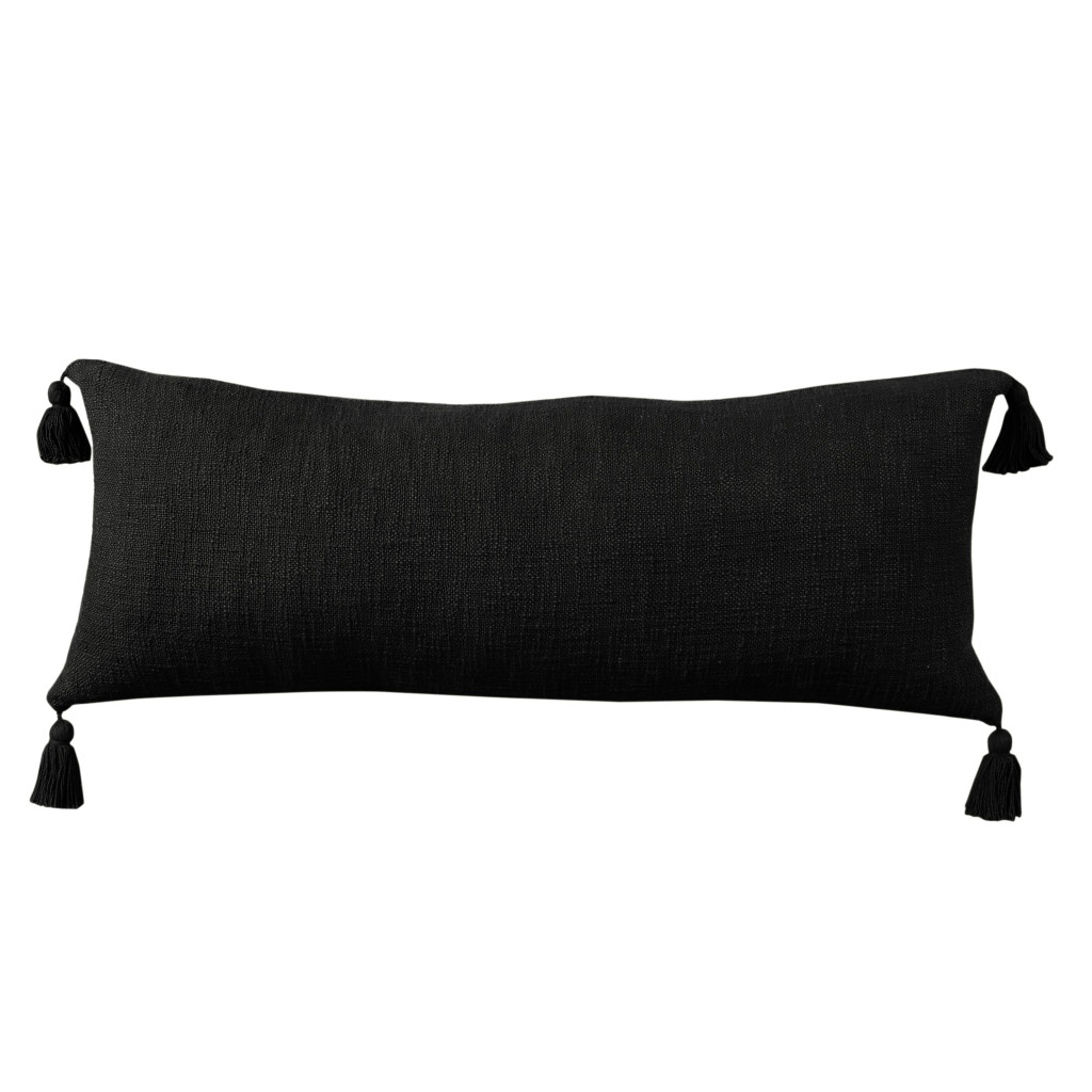 The 14-inch x 36-inch black lumbar cotton throw pillow cover is the perfect decorative accessory for your home. This black hued, accent pillow cover, represents quality construction, expertly made from durable cotton that is not only long lasting but soft to the touch as well. Pillow covers are a good idea for anyone that loves to decorate or accent their space with color and texture. Combine with your own fill or insert to add decoration and dimension to your favorite chair, accent your sofa, or to use as part of your bed ensemble. 14.00-inch h x 36.00-inch w x 0.25-inch d.