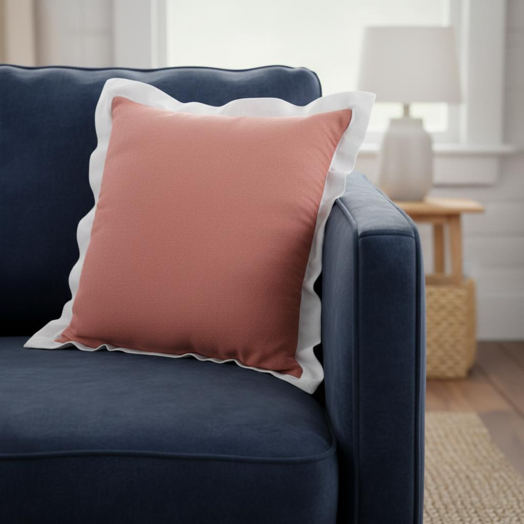 cotton throw pillow cover, block cotton throw pillow cover, color block cotton throw pillow, coral white color block cotton, 20" coral white color block |