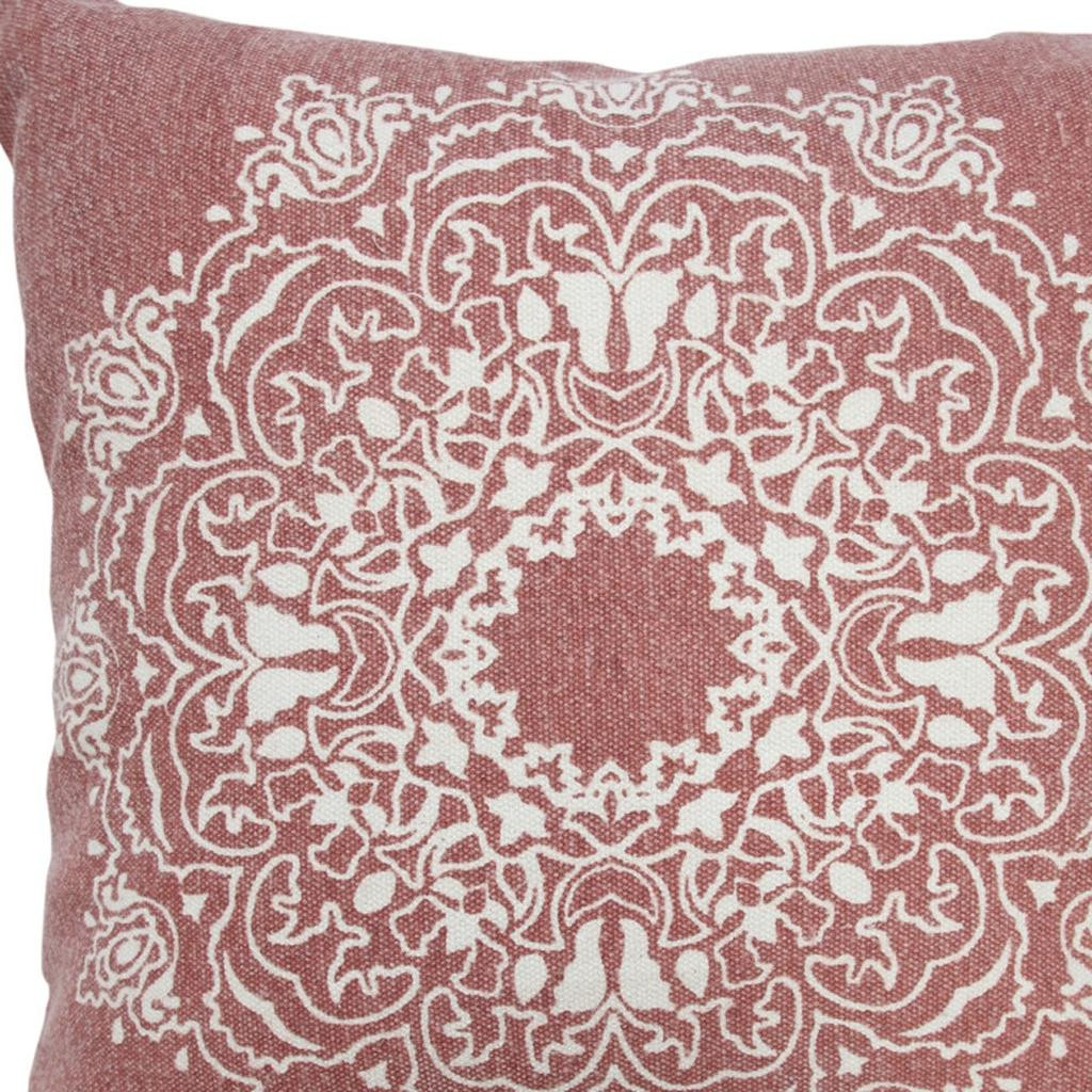 This 20-inch red and white medallion cotton throw pillow cover will add a beautiful decorative accent to your decor. Durable red and white cotton has been used to give this pillow cover a beautiful look that will stand the test of time. Decorative pillow covers are a great way to change up the look and feel of your space easily and quickly. Combine with your own fill or insert to add decoration and dimension to your favorite chair, accent your sofa, or to use as part of your bed ensemble. 20.00-inch h x 20.00-inch w x 0.25-inch d.