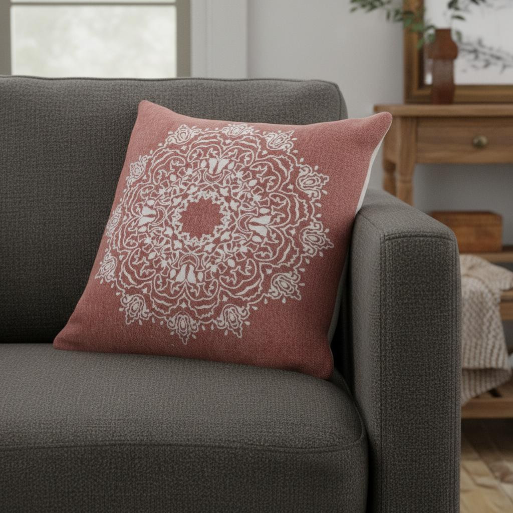 This 20-inch dusty rose and white medallion cotton throw pillow cover will add a beautiful decorative accent to your decor. This dusty rose and white hued, accent pillow cover, represents quality construction, expertly made from durable cotton that is not only long lasting but soft to the touch as well. Pillow covers are a good idea for anyone that loves to decorate or accent their space with color and texture. Combine with your own fill or insert to add decoration and dimension to your favorite chair, accent your sofa, or to use as part of your bed ensemble. 20.00-inch h x 20.00-inch w x 0.25-inch d.