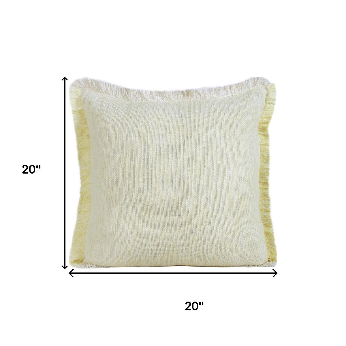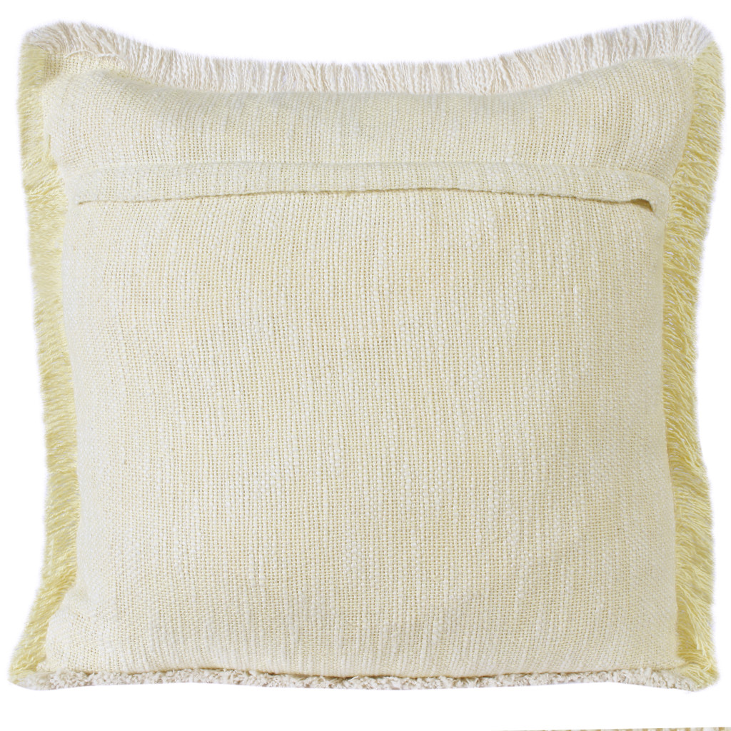 Add an air of fashion to your room and rejuvenate the space with this cute and fashionable 20-inch yellow and white striped cotton throw pillow cover. Durable yellow and white cotton has been used to give this pillow cover a beautiful look that will stand the test of time. Decorative pillow covers are a great way to change up the look and feel of your space easily and quickly. Combine with your own fill or insert to add decoration and dimension to your favorite chair, accent your sofa, or to use as part of your bed ensemble. 20.00-inch h x 20.00-inch w x 0.50-inch d.