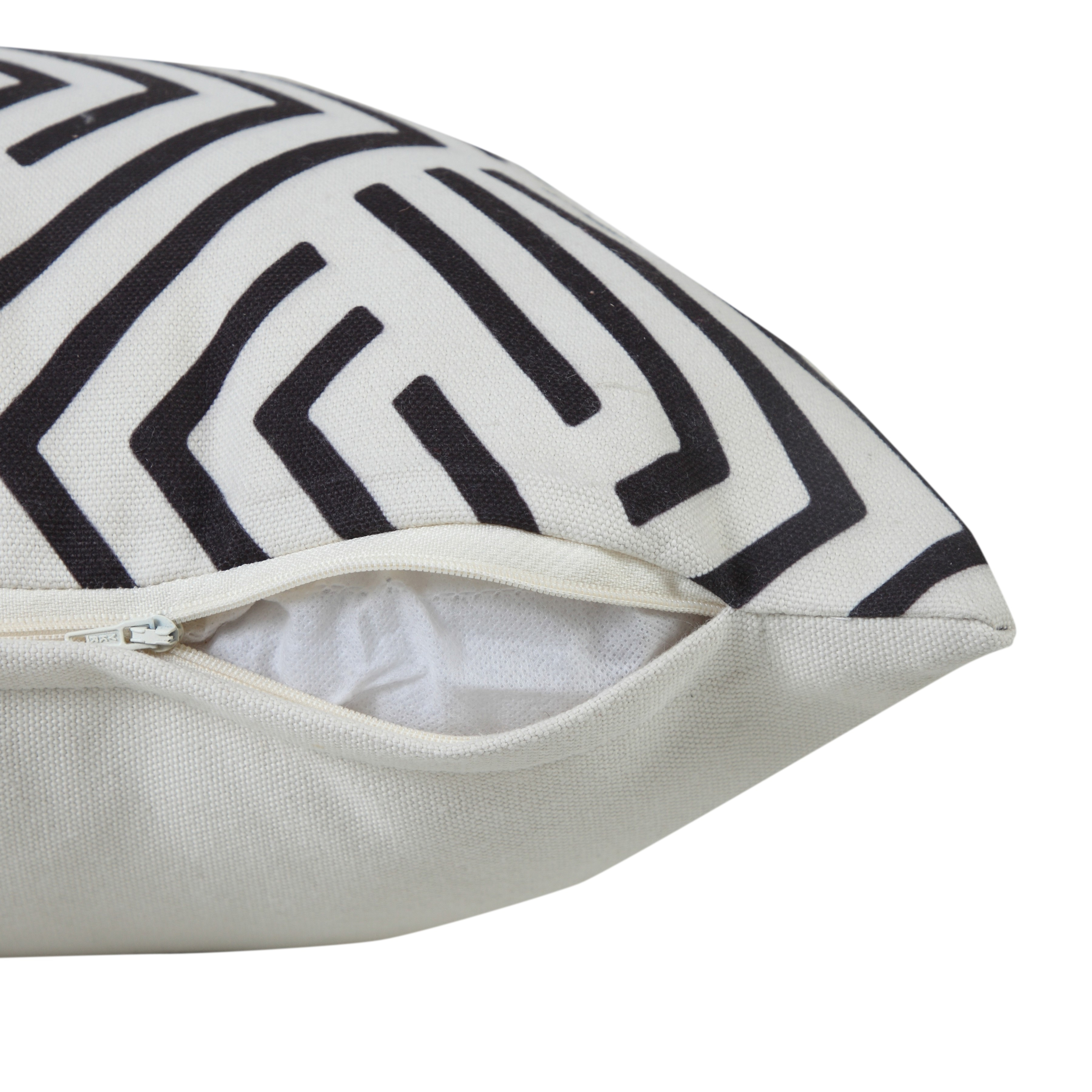 Bring a bit of fashion and zip to your space with this eye-catching and comfy 20-inch black and white geometric recycled poly linen throw pillow cover. This black and white hued, accent pillow cover, represents quality construction, expertly made from durable recycled poly linen that is not only long lasting but soft to the touch as well. Decorative pillow covers are a great way to change up the look and feel of your space easily and quickly. Combine with your own fill or insert to add decoration and dimension to your favorite chair, accent your sofa, or to use as part of your bed ensemble. 20.00-inch h x 20.00-inch w x 0.50-inch d.