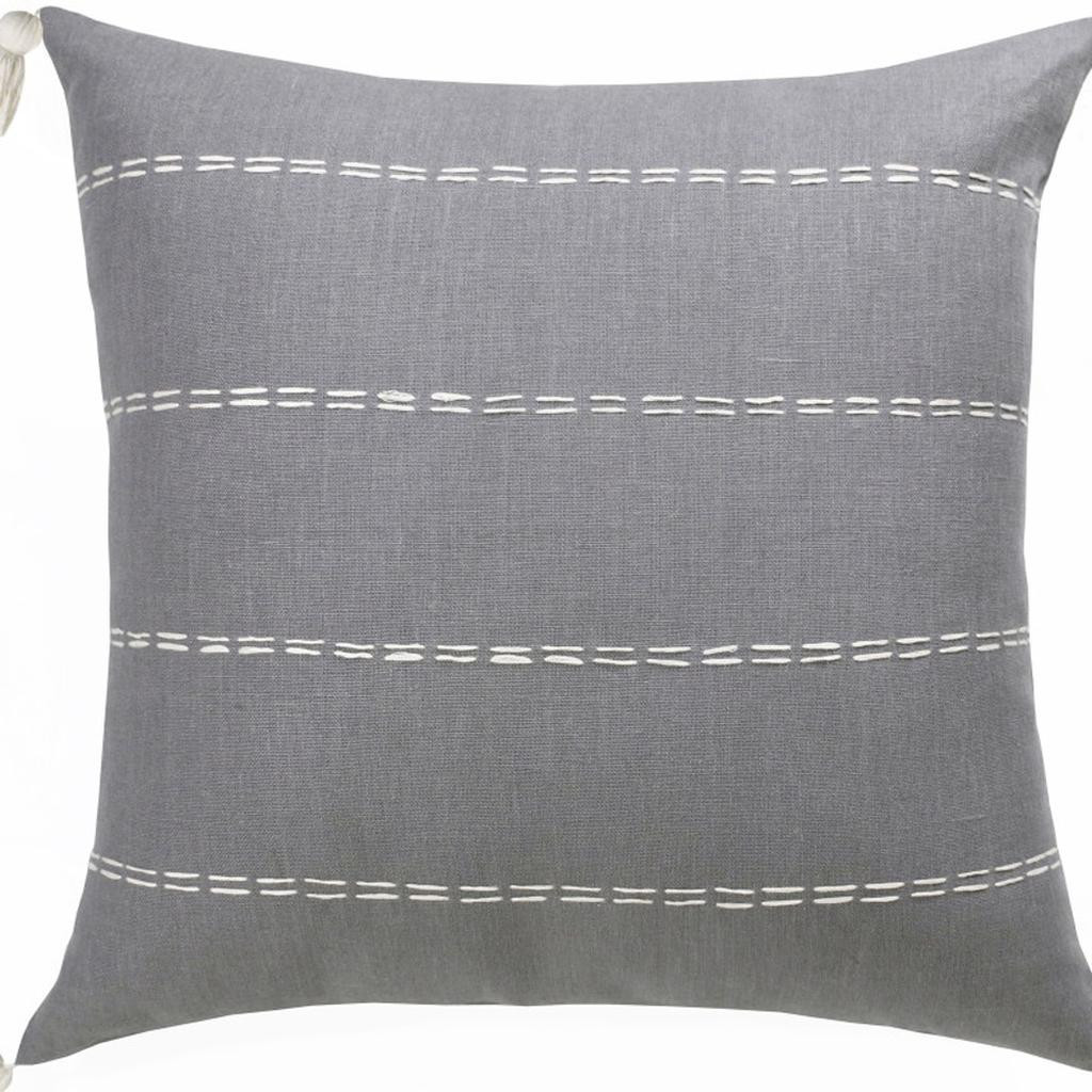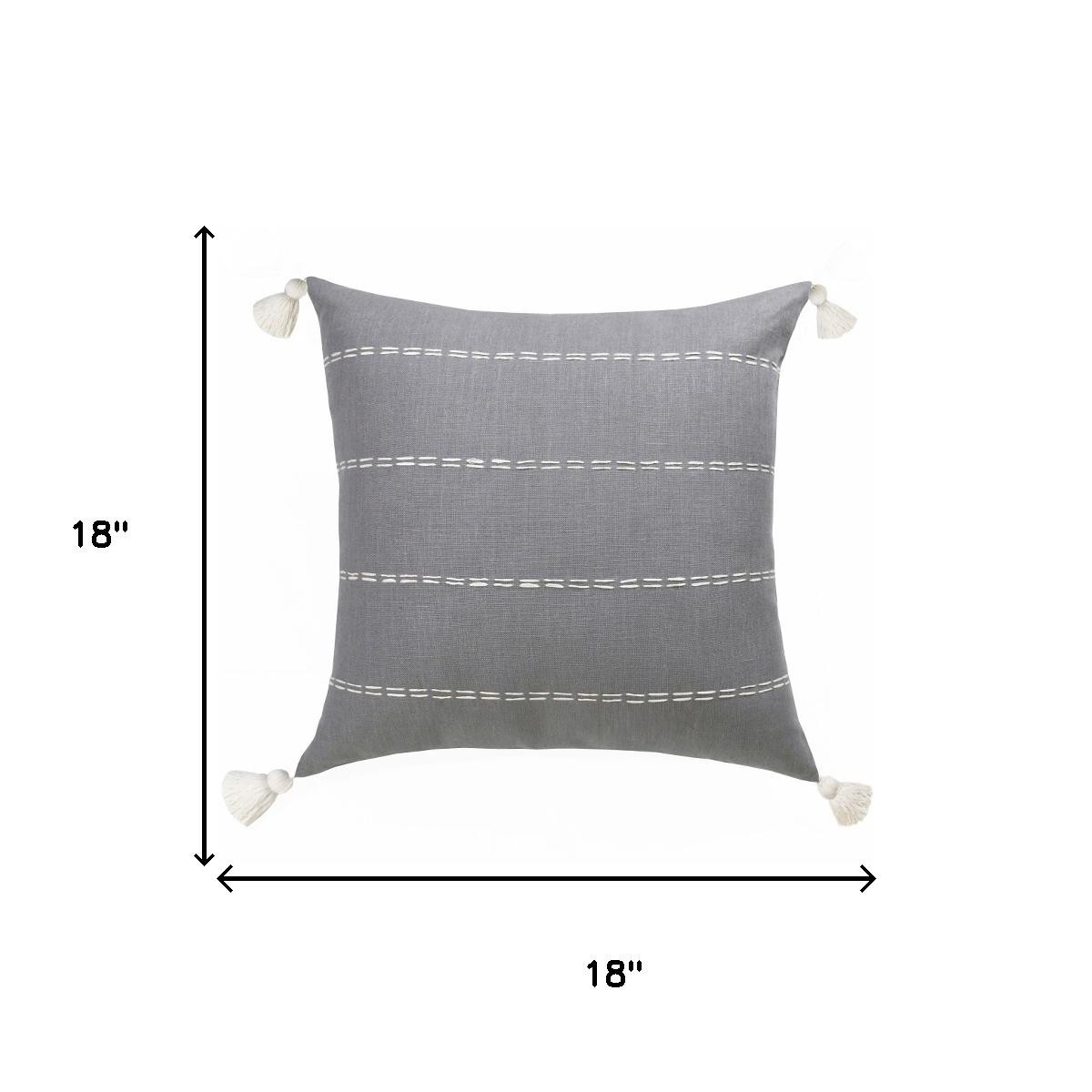 This 18-inch gray and ivory striped linen throw pillow cover will add a beautiful decorative accent to your decor. The gray and ivory coloring of the extremely durable and long lasting linen pillow cover will add dimension and texture to your space. Decorative pillow covers are a great way to change up the look and feel of your space easily and quickly. Combine with your own fill or insert to add decoration and dimension to your favorite chair, accent your sofa, or to use as part of your bed ensemble. 18.00-inch h x 18.00-inch w x 0.25-inch d.