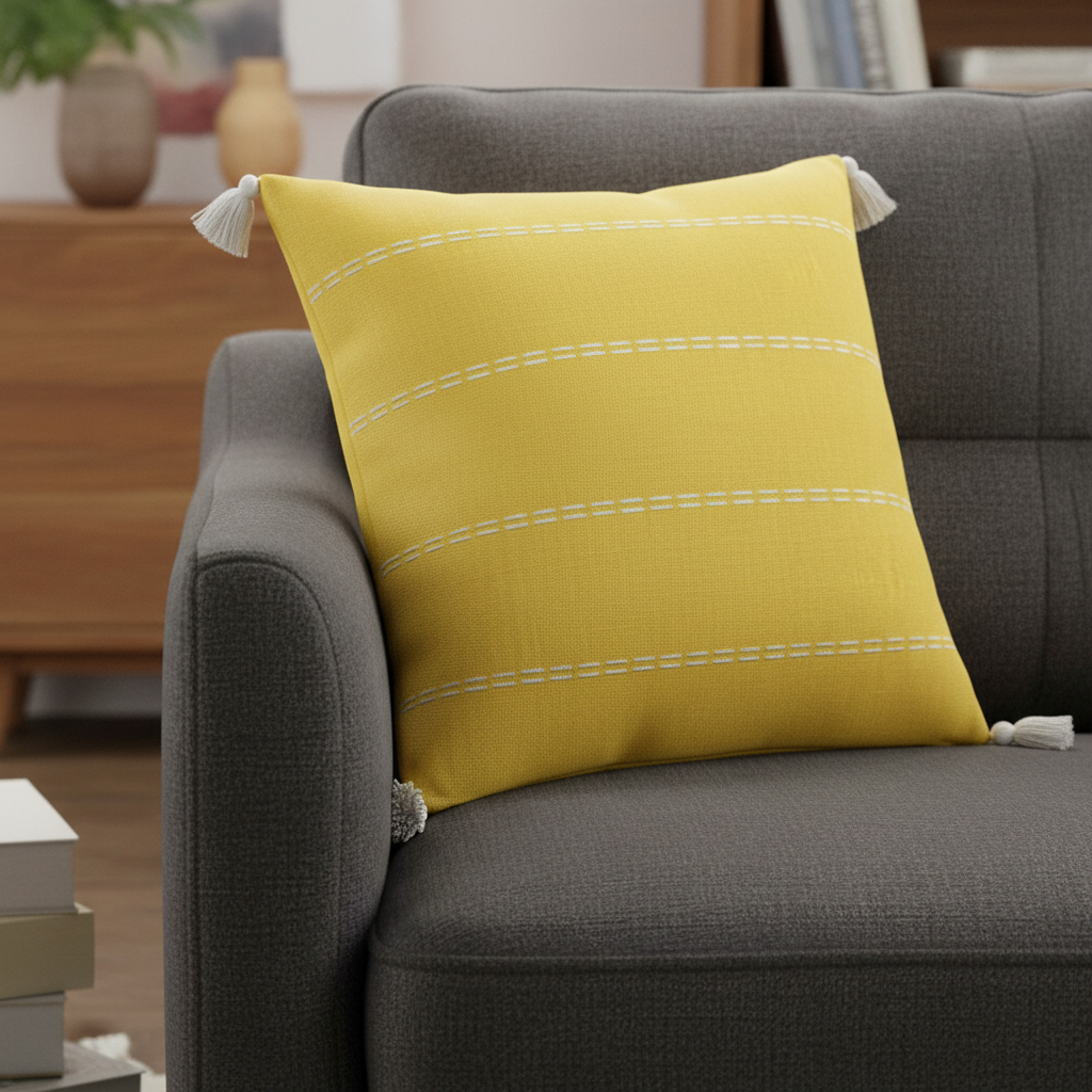 The perfect complement to your sofa, favorite chair, or bed, this 18-inch yellow and ivory striped linen throw pillow cover is a great decorative accent. This soft and durable decorative pillow cover is expertly made of high grade, long lasting linen in a yellow and ivory coloration. Pillow covers are a good idea for anyone that loves to decorate or accent their space with color and texture. Combine with your own fill or insert to add decoration and dimension to your favorite chair, accent your sofa, or to use as part of your bed ensemble. 18.00-inch h x 18.00-inch w x 0.25-inch d.