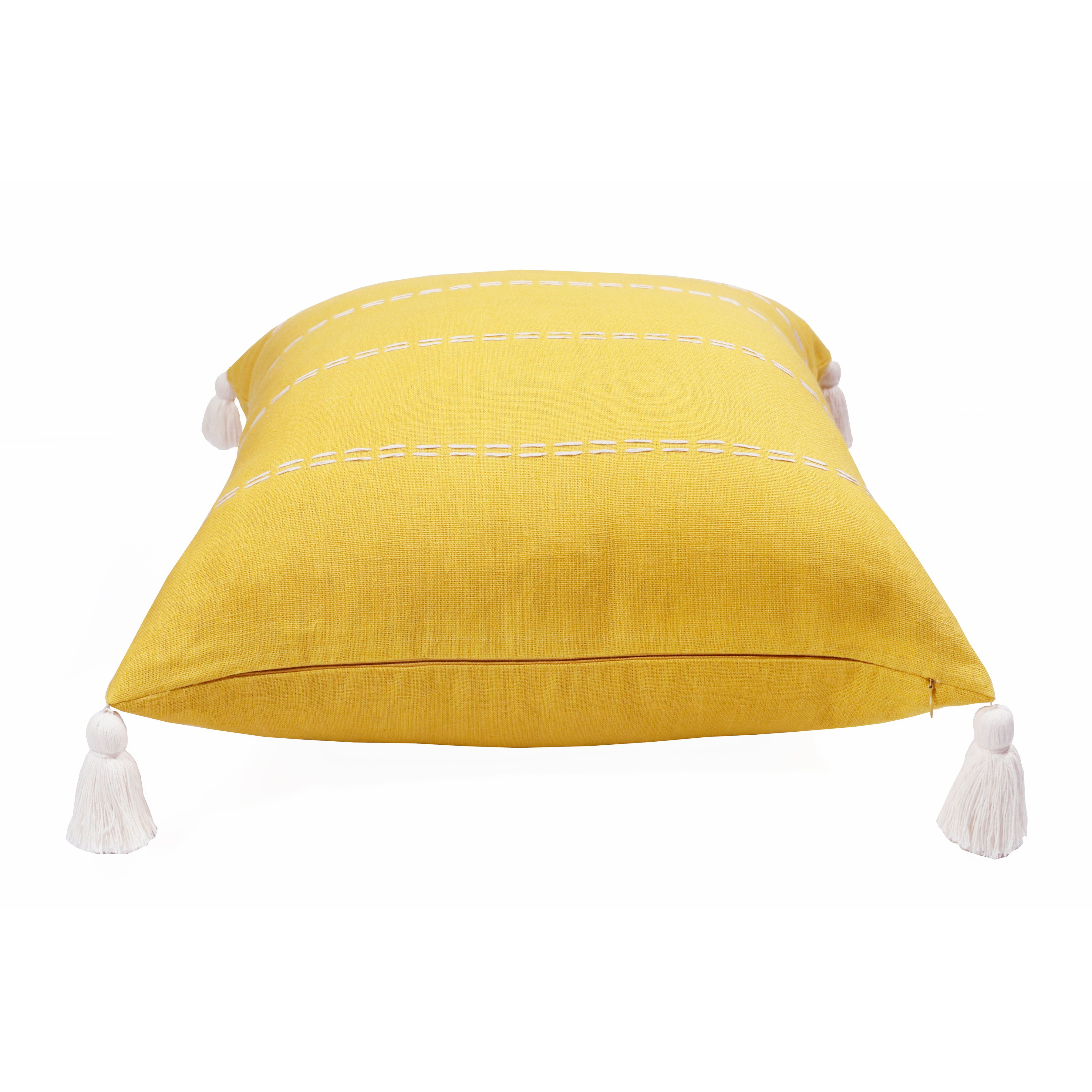 Add an air of fashion to your room and rejuvenate the space with this cute and fashionable 18-inch yellow and ivory striped linen throw pillow cover. The yellow and ivory coloring of the extremely durable and long lasting linen pillow cover will add dimension and texture to your space. Decorative pillow covers are a great way to change up the look and feel of your space easily and quickly. Combine with your own fill or insert to add decoration and dimension to your favorite chair, accent your sofa, or to use as part of your bed ensemble. 18.00-inch h x 18.00-inch w x 0.25-inch d.