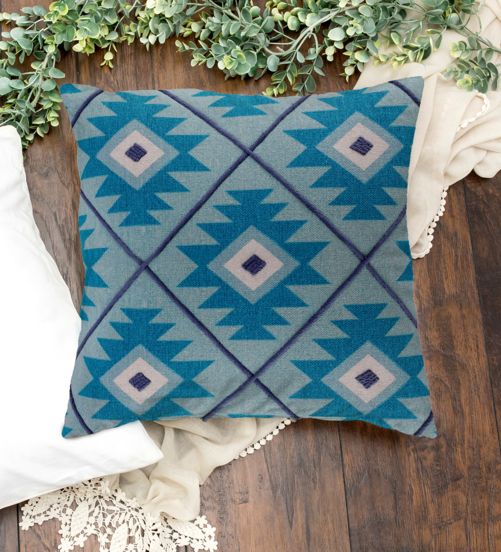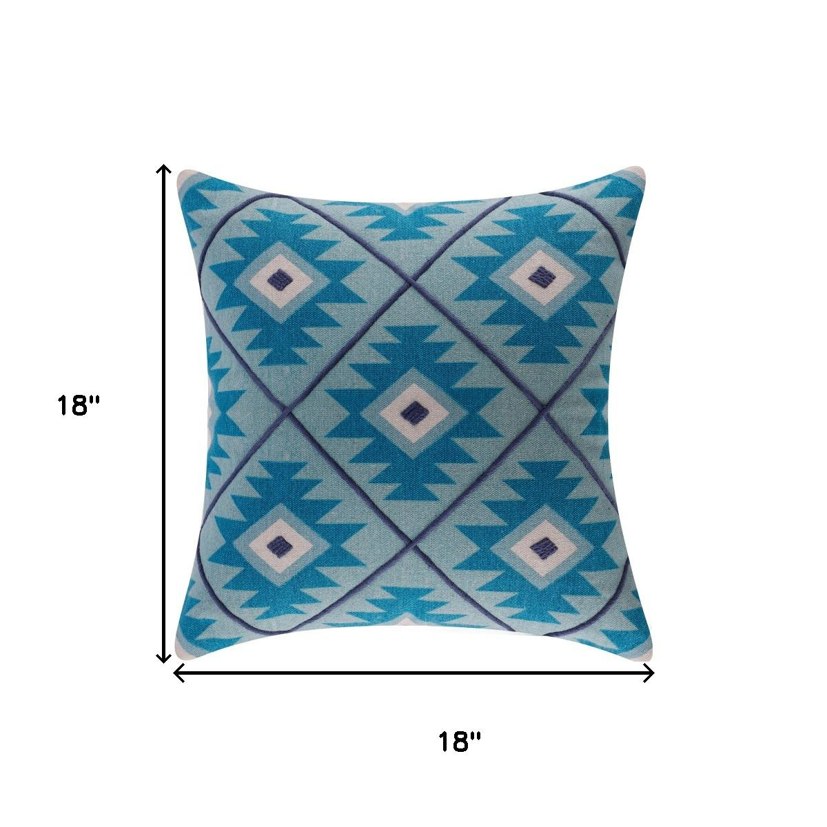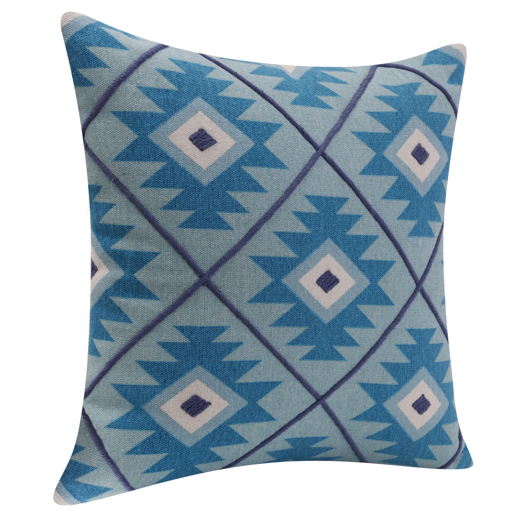 Add an air of fashion to your room and rejuvenate the space with this cute and fashionable 18-inch blue and white geometric cotton throw pillow cover. This blue and white colored decorative pillow cover is made from high grade cotton that is durable and long lasting. Pillow covers are a good idea for anyone that loves to decorate or accent their space with color and texture. Combine with your own fill or insert to add decoration and dimension to your favorite chair, accent your sofa, or to use as part of your bed ensemble. 18.00-inch h x 18.00-inch w x 0.25-inch d.