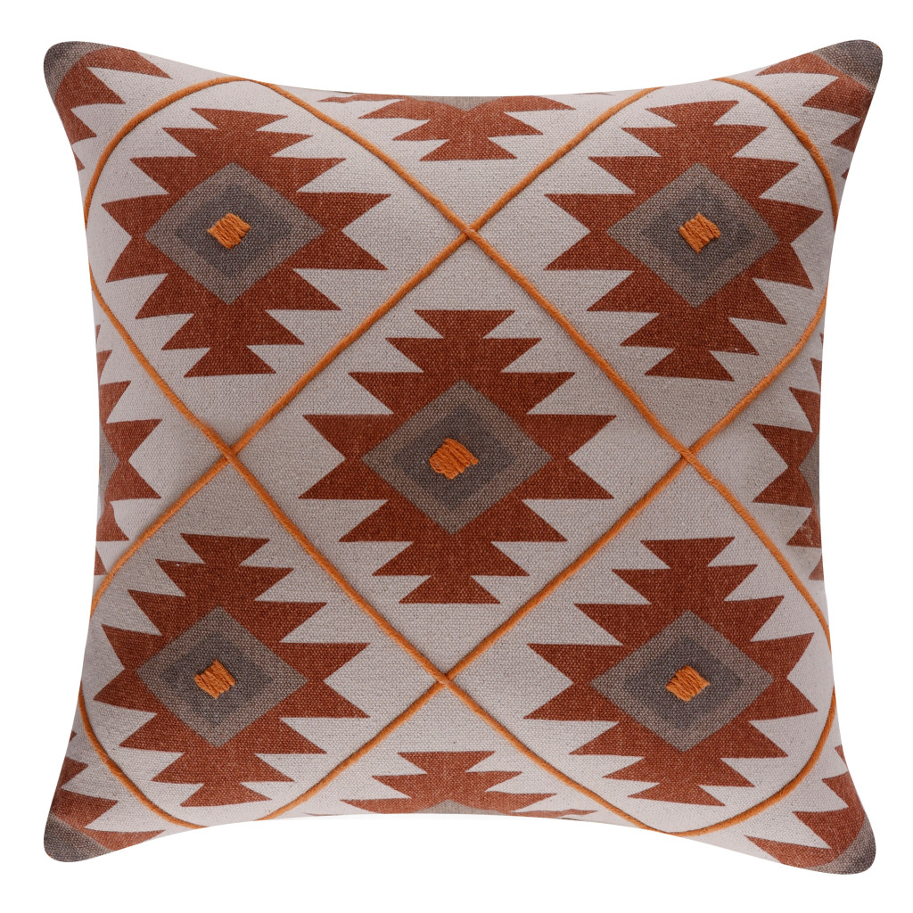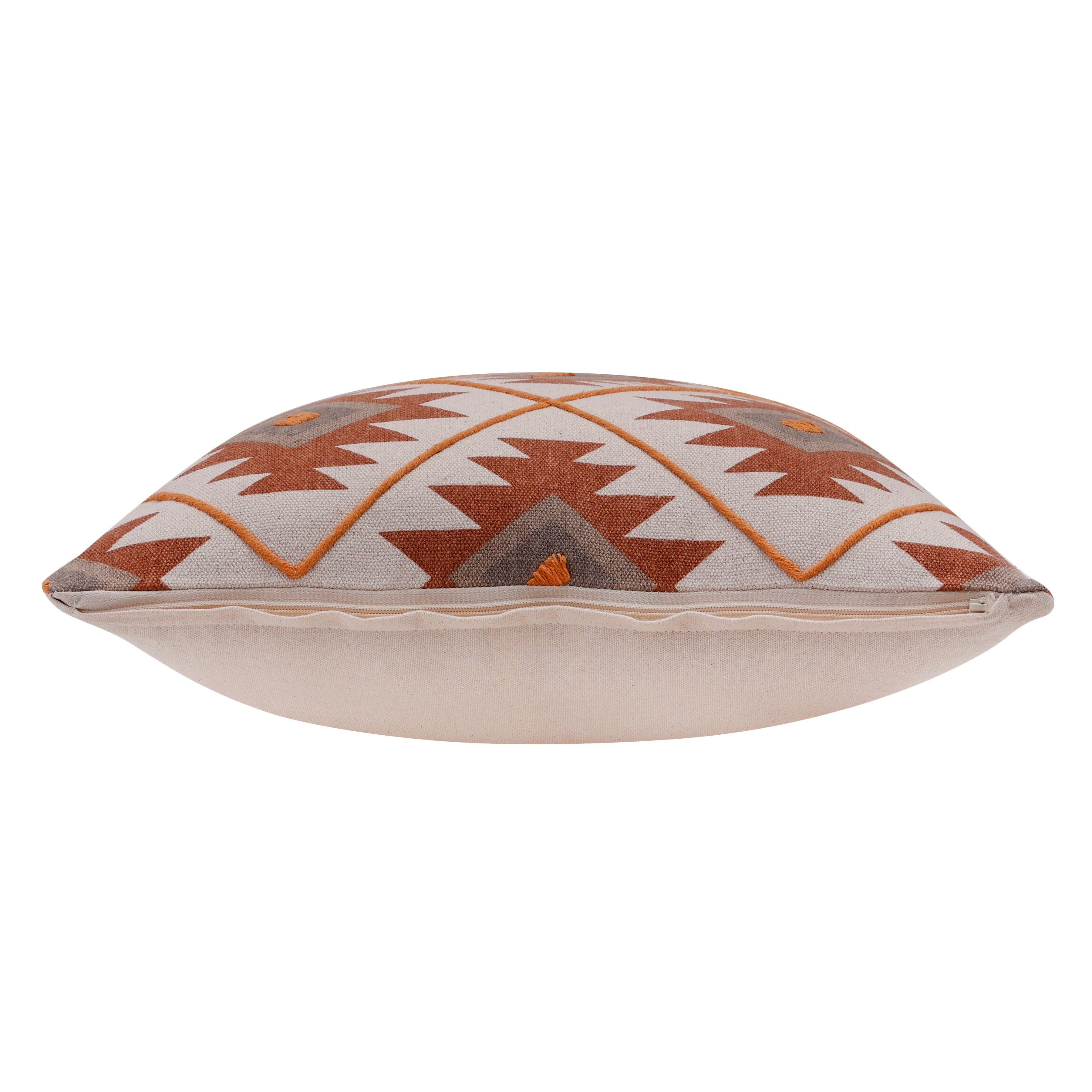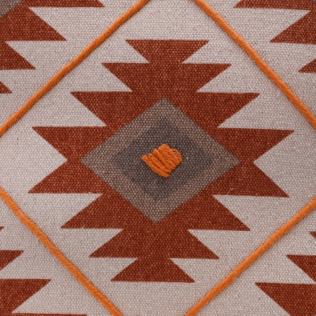 Unique and decorative, this comfortable 18-inch orange and white geometric cotton throw pillow cover will leave a lasting impression. This orange and white colored decorative pillow cover is made from high grade cotton that is durable and long lasting. Pillow covers are a good idea for anyone that loves to decorate or accent their space with color and texture. Combine with your own fill or insert to add decoration and dimension to your favorite chair, accent your sofa, or to use as part of your bed ensemble. 18.00-inch h x 18.00-inch w x 0.25-inch d.