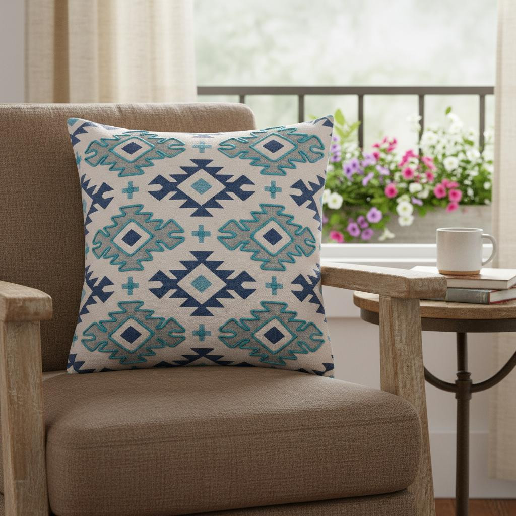 cotton throw pillow cover, blue geometric cotton throw pillow, geometric cotton throw pillow cover, gray light blue geometric cotton, 18" navy blue light gray |
