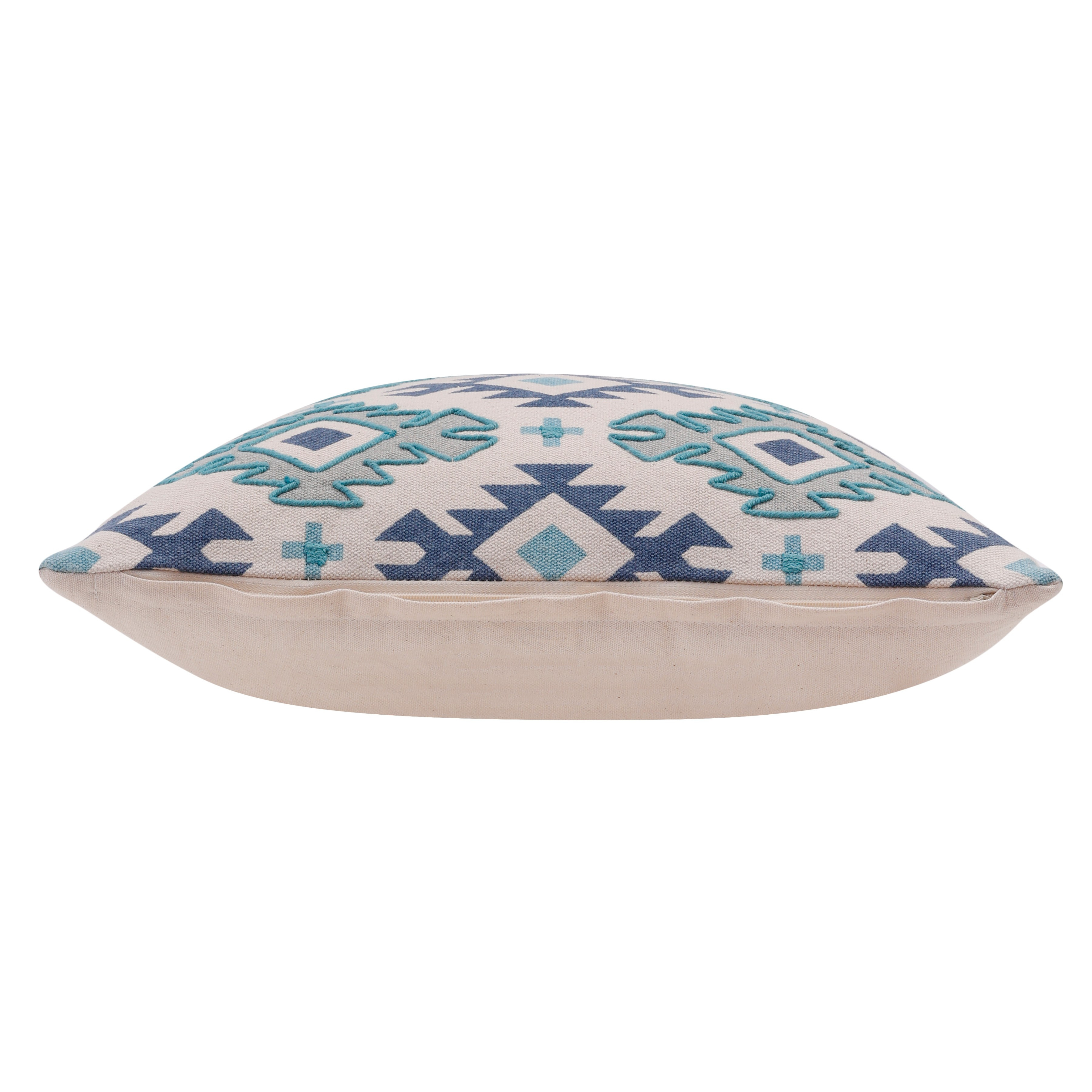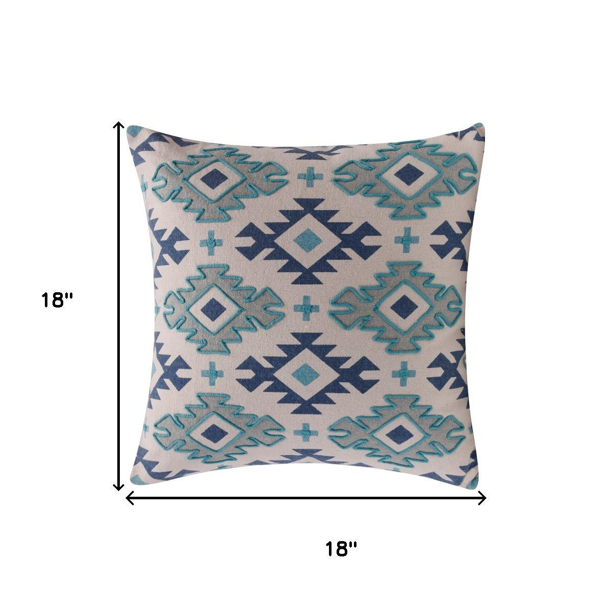 The perfect complement to your sofa, favorite chair, or bed, this 18-inch blue and gray geometric cotton throw pillow cover is a great decorative accent. Durable blue and gray cotton has been used to give this pillow cover a beautiful look that will stand the test of time. Pillow covers are a good idea for anyone that loves to decorate or accent their space with color and texture. Combine with your own fill or insert to add decoration and dimension to your favorite chair, accent your sofa, or to use as part of your bed ensemble. 18.00-inch h x 18.00-inch w x 0.25-inch d.