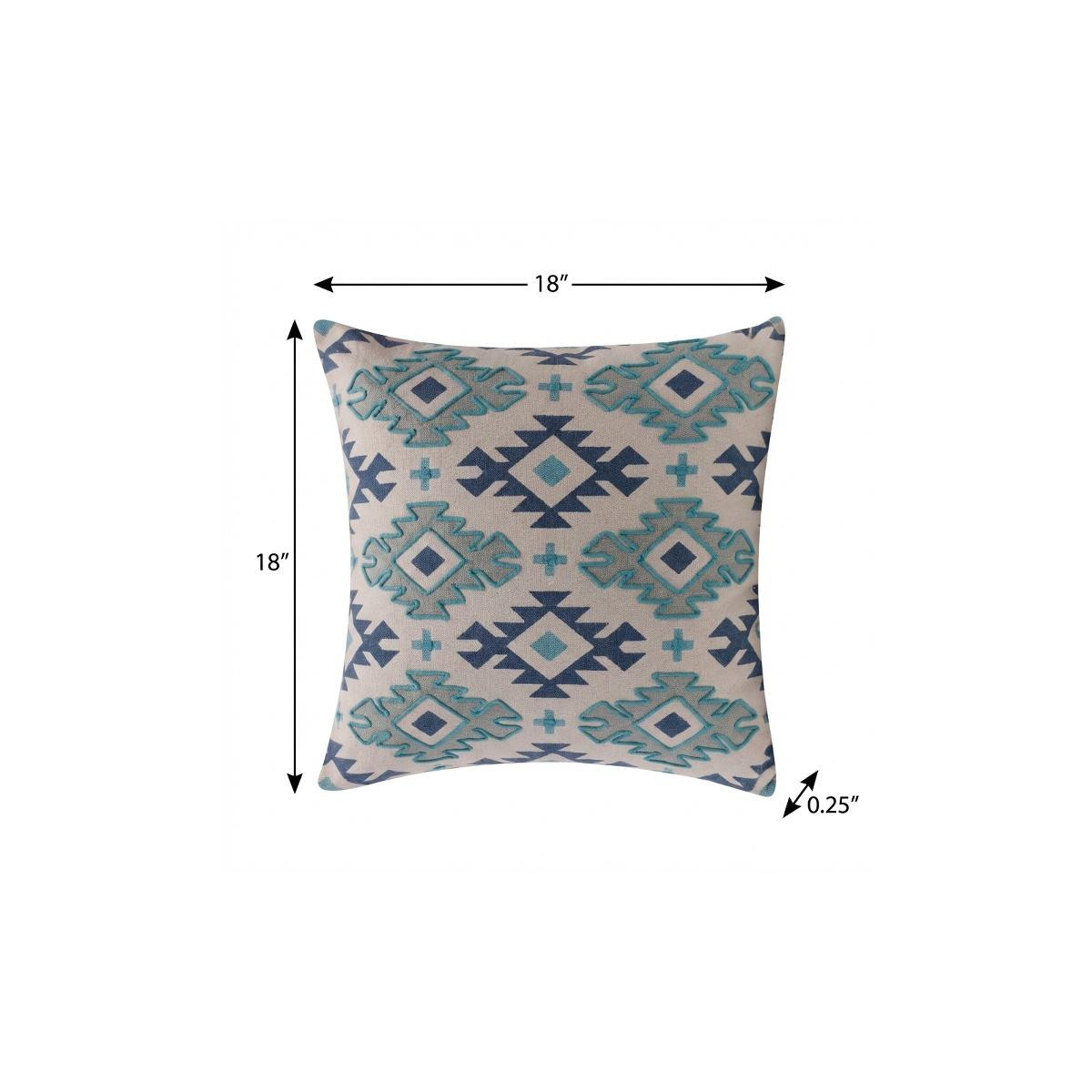 Bring a bit of fashion and zip to your space with this eye-catching and comfy 18-inch navy blue light gray and light blue geometric cotton throw pillow cover. This navy blue, light gray, and light blue hued, accent pillow cover, represents quality construction, expertly made from durable cotton that is not only long lasting but soft to the touch as well. Decorative pillow covers are a great way to change up the look and feel of your space easily and quickly. Combine with your own fill or insert to add decoration and dimension to your favorite chair, accent your sofa, or to use as part of your bed ensemble. 18.00-inch h x 18.00-inch w x 0.25-inch d.
