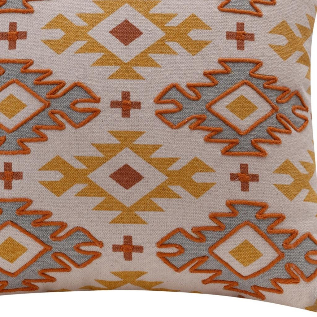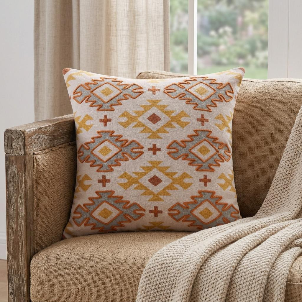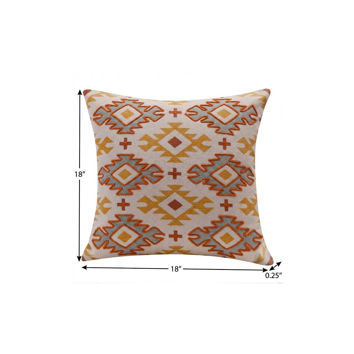 The perfect complement to your sofa, favorite chair, or bed, this 18-inch yellow rust and cream geometric cotton throw pillow cover is a great decorative accent. This yellow, rust, and cream colored decorative pillow cover is made from high grade cotton that is durable and long lasting. Pillow covers are a good idea for anyone that loves to decorate or accent their space with color and texture. Combine with your own fill or insert to add decoration and dimension to your favorite chair, accent your sofa, or to use as part of your bed ensemble. 18.00-inch h x 18.00-inch w x 0.25-inch d.