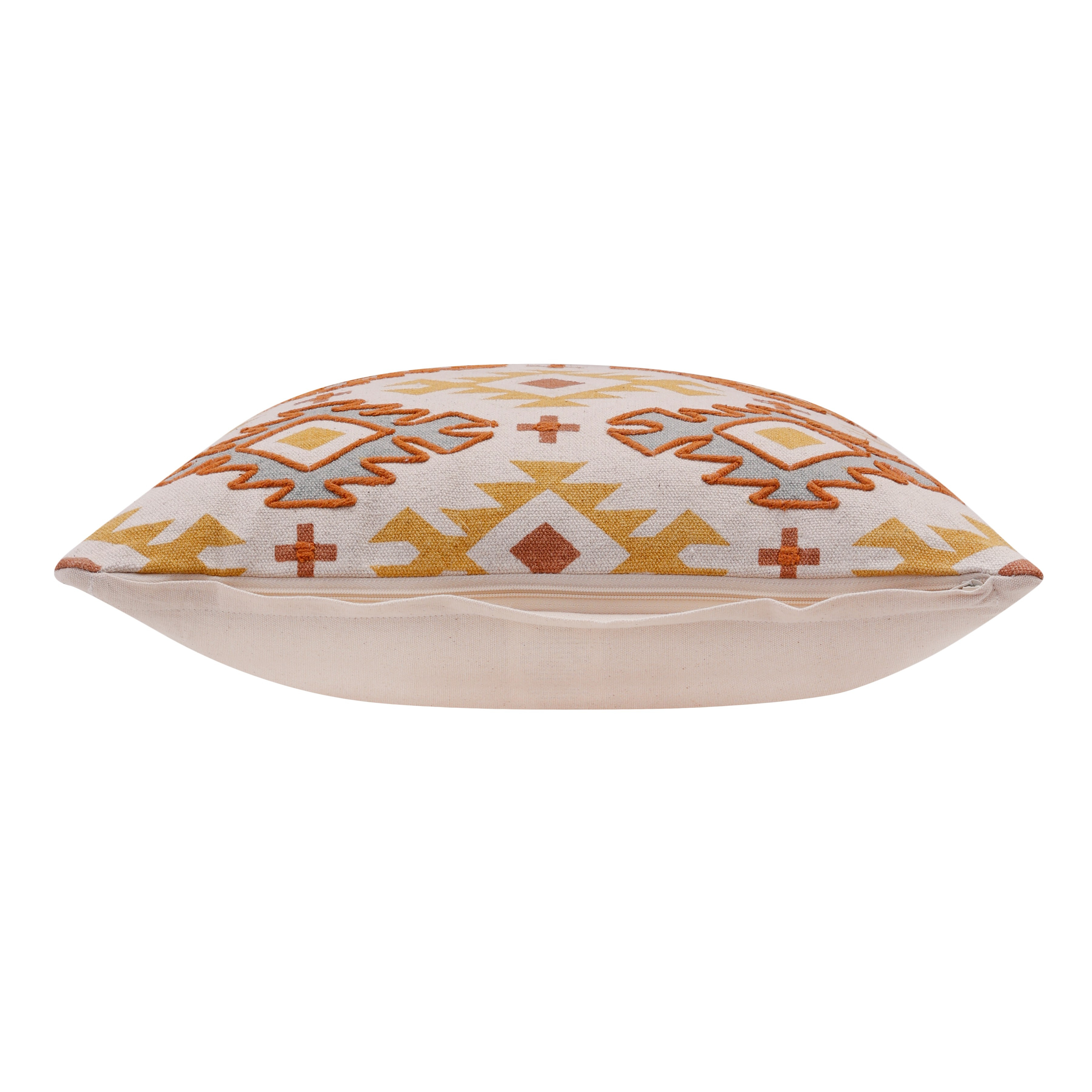 The 18-inch yellow and orange geometric cotton throw pillow cover is the perfect decorative accessory for your home. The yellow and orange coloring of the extremely durable and long lasting cotton pillow cover will add dimension and texture to your space. Decorative pillow covers are a great way to change up the look and feel of your space easily and quickly. Combine with your own fill or insert to add decoration and dimension to your favorite chair, accent your sofa, or to use as part of your bed ensemble. 18.00-inch h x 18.00-inch w x 0.25-inch d.
