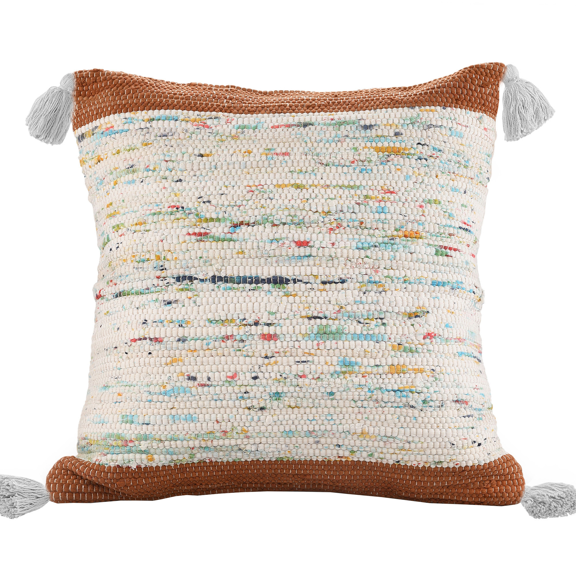 Add an air of fashion to your room and rejuvenate the space with this cute and fashionable 18-inch brown cream and blue color block cotton throw pillow cover. This soft and durable decorative pillow cover is expertly made of high grade, long lasting cotton in a brown, cream, and blue coloration. Pillow covers are a good idea for anyone that loves to decorate or accent their space with color and texture. Combine with your own fill or insert to add decoration and dimension to your favorite chair, accent your sofa, or to use as part of your bed ensemble. 18.00-inch h x 18.00-inch w x 0.25-inch d.