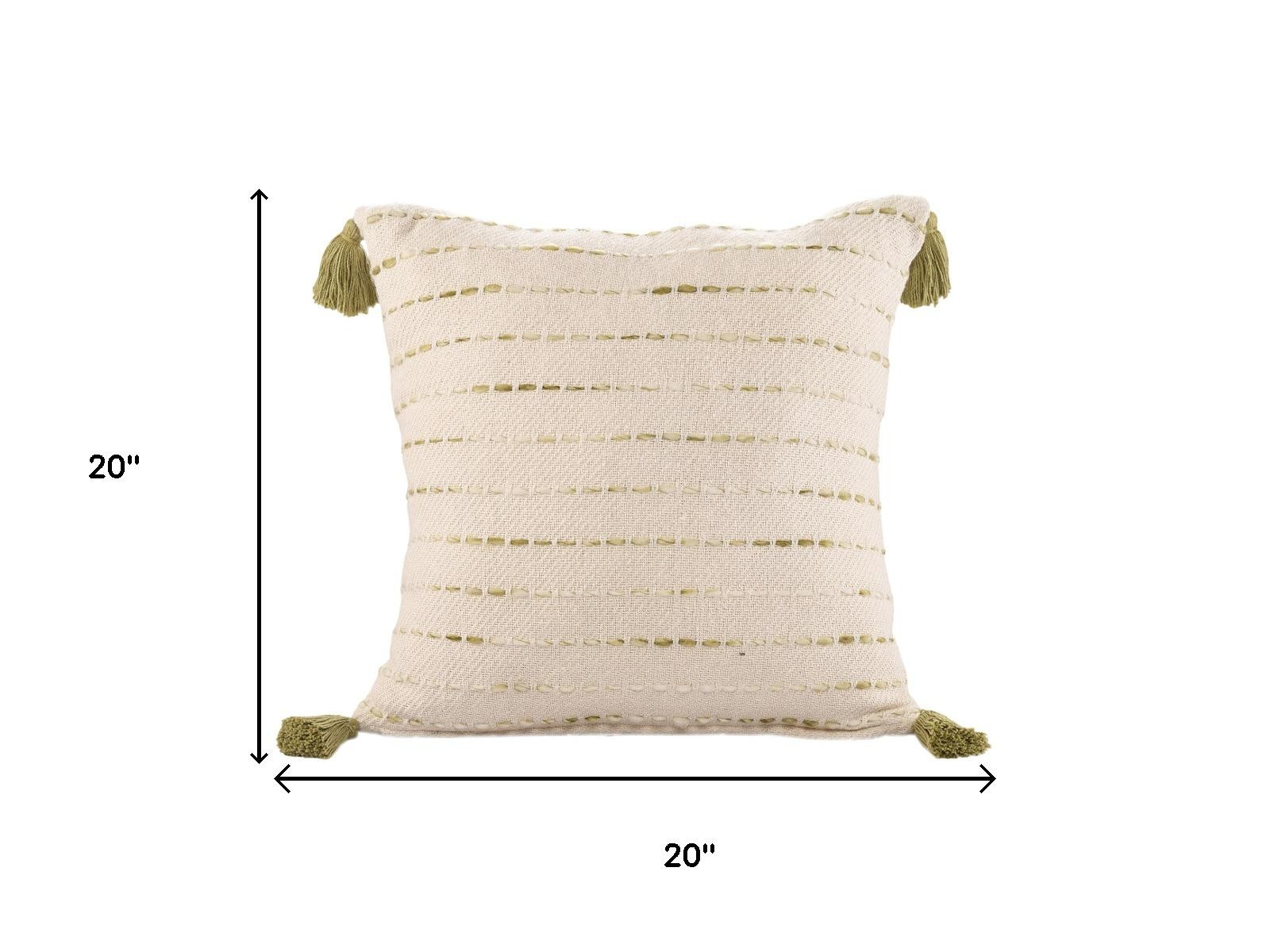 The perfect complement to your sofa, favorite chair, or bed, this 20-inch beige and green striped cotton blend throw pillow cover is a great decorative accent. This beige and green colored decorative pillow cover is made from high grade cotton blend that is durable and long lasting. Decorative pillow covers are a great way to change up the look and feel of your space easily and quickly. Combine with your own fill or insert to add decoration and dimension to your favorite chair, accent your sofa, or to use as part of your bed ensemble. 20.00-inch h x 20.00-inch w x 0.25-inch d.