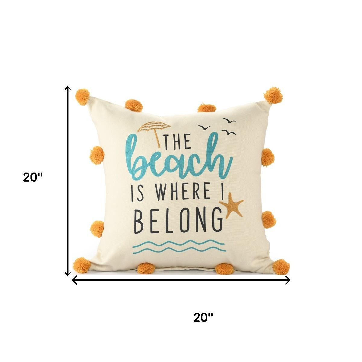 Unique and decorative, this comfortable 20-inch beige and orange beach text throw pillow cover will leave a lasting impression. This soft and durable decorative pillow cover is expertly made of high grade, long lasting polyester in a beige and orange coloration. Pillow covers are a good idea for anyone that loves to decorate or accent their space with color and texture. Combine with your own fill or insert to add decoration and dimension to your favorite chair, accent your sofa, or to use as part of your bed ensemble. 20.00-inch h x 20.00-inch w x 4.00-inch d.