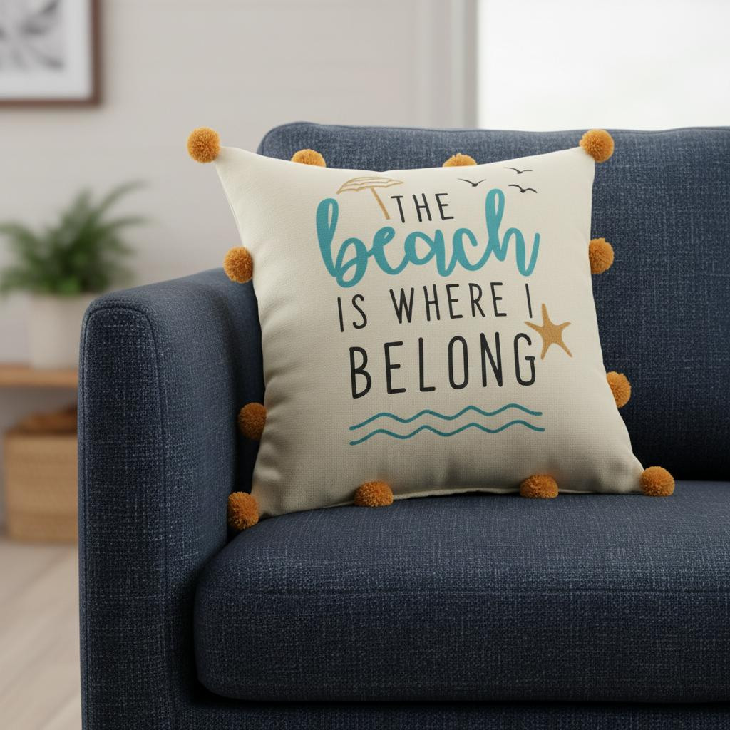 Bring a bit of fashion and zip to your space with this eye-catching and comfy 20-inch beige and orange the beach is where i belong beach throw pillow cover. This soft and durable decorative pillow cover is expertly made of high grade, long lasting polyester in a beige and orange coloration. Pillow covers are a good idea for anyone that loves to decorate or accent their space with color and texture. Combine with your own fill or insert to add decoration and dimension to your favorite chair, accent your sofa, or to use as part of your bed ensemble. 20.00-inch h x 20.00-inch w x 4.00-inch d.